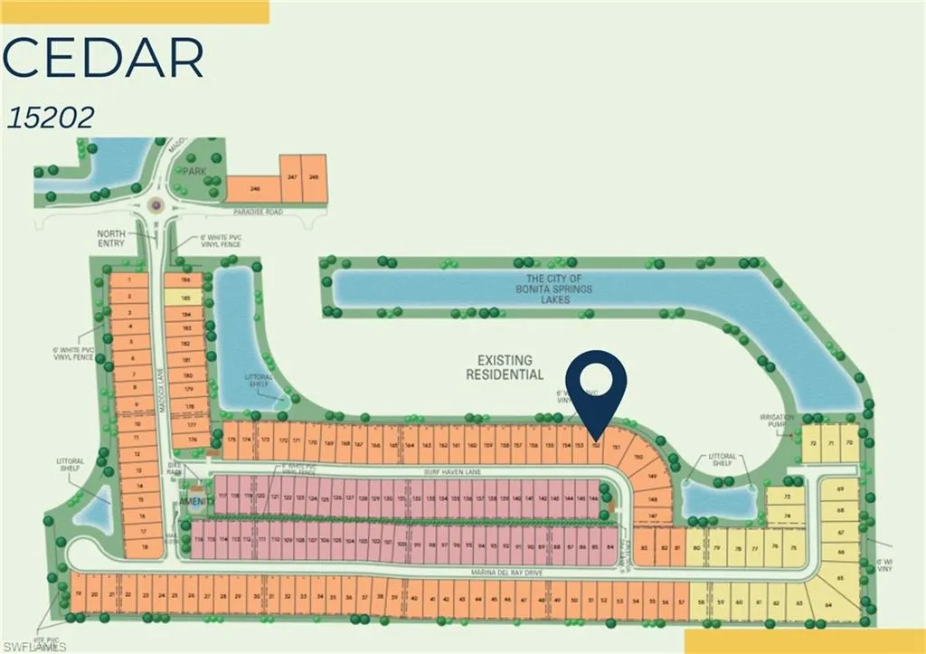 This Cedar floorplan offers 3 bedrooms, 2 bathrooms, and a 2-car garage, designed with modern finishes and thoughtful details throughout. Interior highlights include a tray ceiling in the gathering room, white cabinetry paired with elegant quartz countertops, and 22″x22″ tile flooring that flows seamlessly through the home. Additional features such as a tile roof and impact glass windows provide both durability and peace of mind, making this home a perfect blend of style and function. Bonita Del Sol has something for everyone, in a premier Bonita Springs location close to almost everything. Bonita Del Sol will have 248 future doors, a community pool, a walking path, low HOA, & NO CDD!