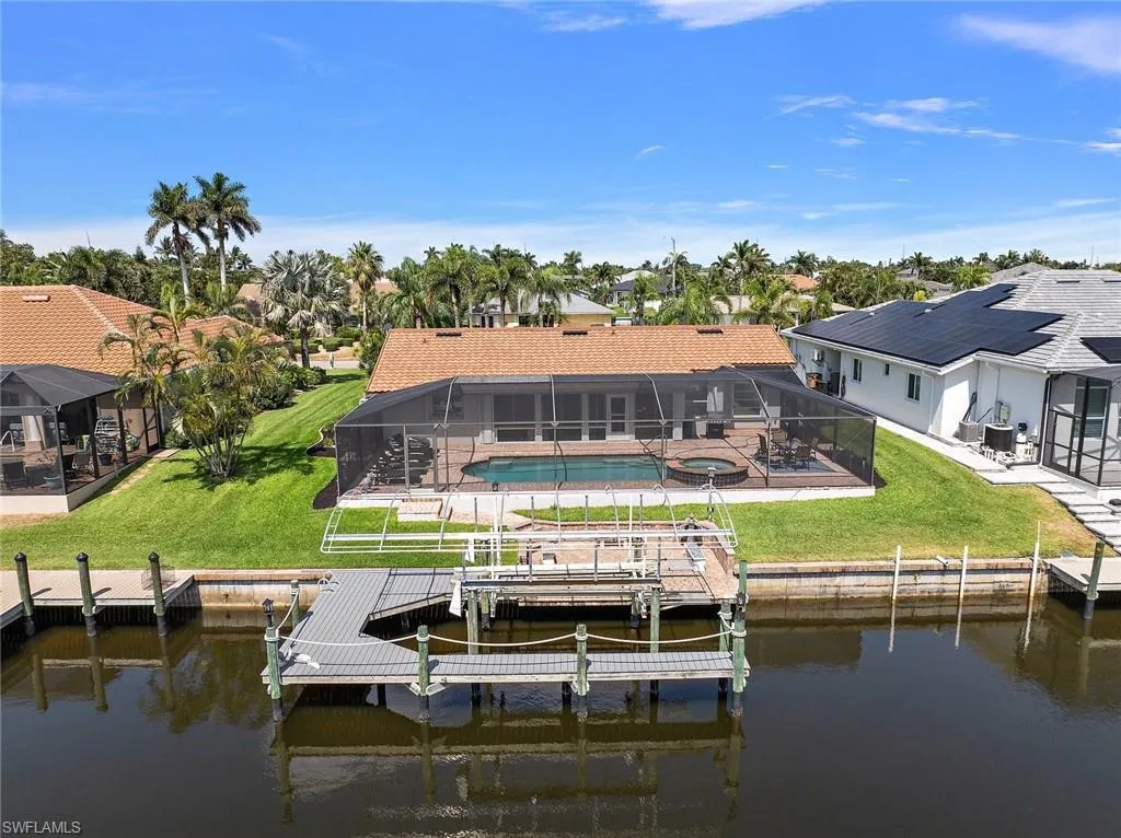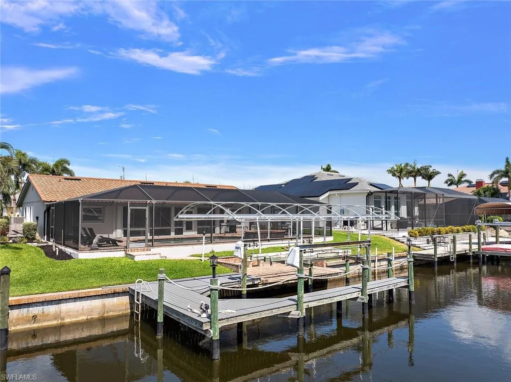 Back on the Market at NEW Price!! Motivated Seller!! Turn-Key Waterfront Paradise with Pool, Spa, and Direct Gulf Access – No Bridges! A MUST-SEE waterfront pool home that perfectly blends luxury, comfort, and Florida lifestyle! Situated on a beautifully landscaped lot, this stunning property offers super-fast, no-bridge access to the Caloosahatchee River and Gulf of Mexico—a true boater’s dream. Enjoy the best of outdoor living with an oversized paver patio, leading to your composite covered dock complete with boat lift and canopy—ideal for docking your boat after a sun-filled day on the water. Relax in the screen-enclosed lanai with private pool and spa, or host unforgettable gatherings in the expansive outdoor dining and lounge areas. Step inside to a bright and welcoming interior featuring a glassed-in bonus room with vaulted, beamed ceilings and pocket doors that open seamlessly into the main living space. The updated kitchen shines with stainless steel appliances, granite countertops, and a pass-through to the bonus room—perfect for entertaining! A Culligan Reverse Osmosis water system under the kitchen sink. Savor your evenings with friends and family on the dockside patio as you enjoy cool drinks and picturesque waterfront views. New Roof in 2023 for peace of mind, and best of all—NO FLOOD DAMAGE from recent hurricanes. Don’t miss your chance to own this exceptional Gulf-access pool home. Schedule your private showing today.