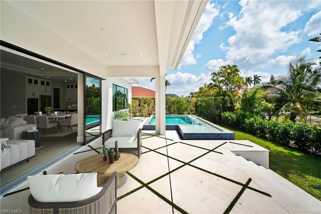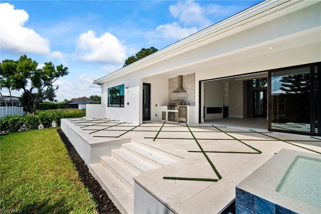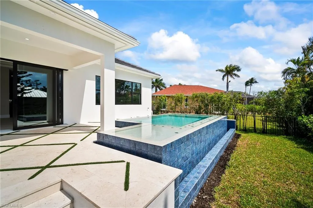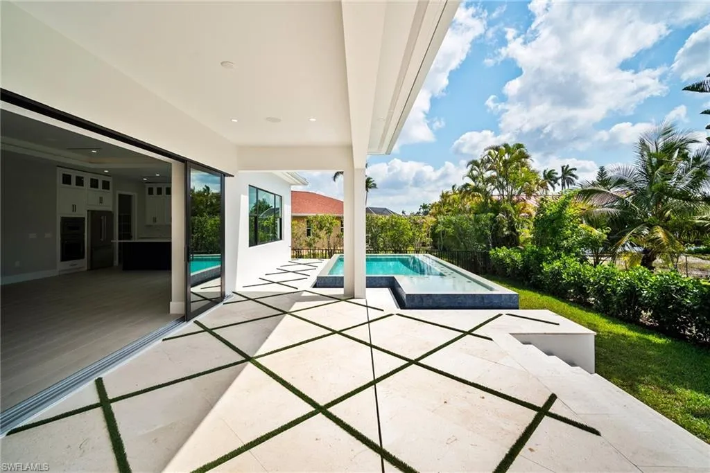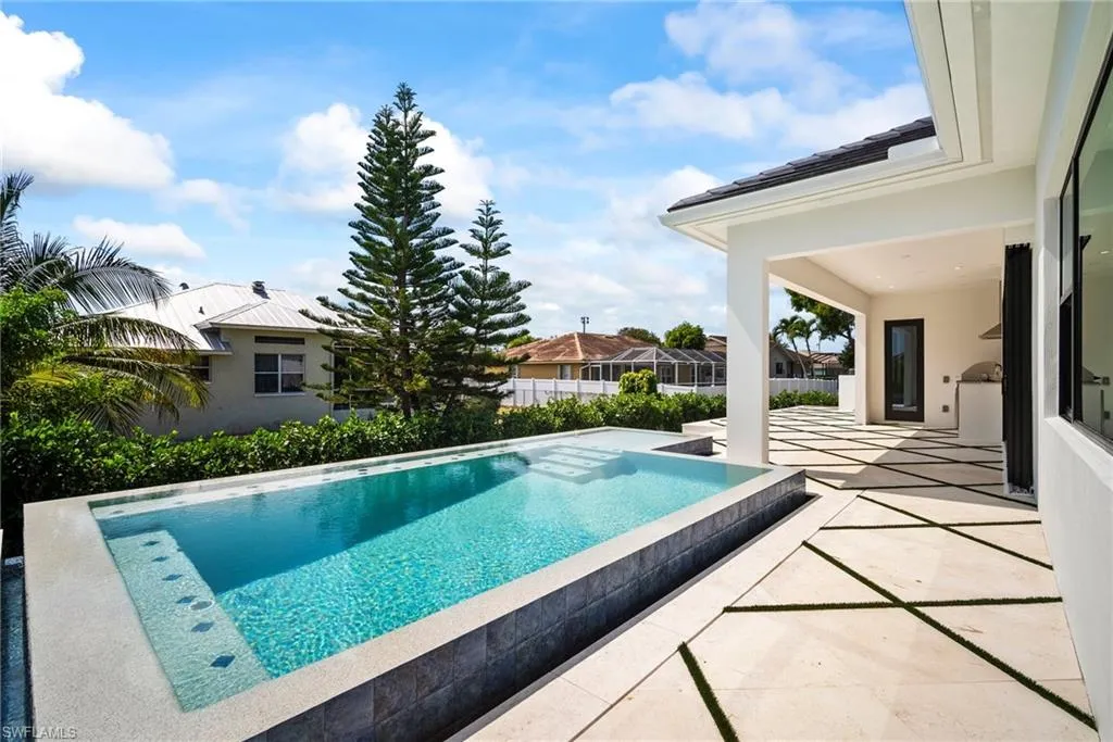 Luxury New Construction Home on Marco Island Embrace coastal sophistication in this newly constructed 3-bedroom, 3-bathroom home on Marco Island. Spanning 3,400 sq. ft., this modern home offers: Multi-zone Sonos audio system indoor and lanai area, Infinity edge pool with iaqualink, bubblers and water wall feature, Oversized garage fits boat, trailer or RV, EV charger in garage, 84 inch electric fireplace with heat, Thermador appliances indoor and outdoor kitchen, Coffered ceiling with multi color remote controlled ambient lighting in ceiling Main Bedroom and Great Room, Whole house surge protector, Custom European floating cabinetry, Outdoor shower, Upgraded travertine on lanai with artificial turf design, All bathrooms equipped with upgraded anti-fog mirrors with multiple color ambient lights,Oversized pantry with vented shelving, Hurricane rated sliding glass doors and windows throughout and so much more. The gourmet kitchen is a chef’s dream, featuring top-of-the-line Thermador appliances, quartz countertops and backsplash, custom cabinetry with under-cabinet ambient lighting for both style and functionality. The master suite is a serene retreat with a spa-inspired ensuite, while two additional bedrooms provide versatility for guests or a home office. A 5-zone Sonos audio system delivers premium sound throughout the home. Step outside to a resort-style paradise, complete with an infinity pool featuring bubblers and a striking water feature wall. The outdoor kitchen, equipped with premium Thermador appliances, elevates al fresco dining and entertaining. This seamless indoor-outdoor design embodies the ultimate tropical lifestyle. The oversized two-car garage includes spacious, oversize doors and a built-in electric vehicle charger, catering to modern convenience. Located minutes from Marco Island’s pristine beaches, world-class dining, and marinas, this home offers unmatched luxury and convenience. Schedule your private tour today!
