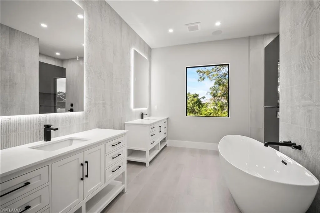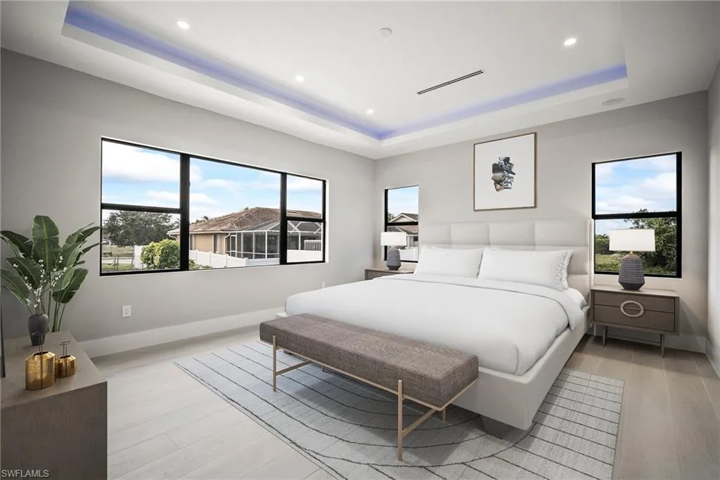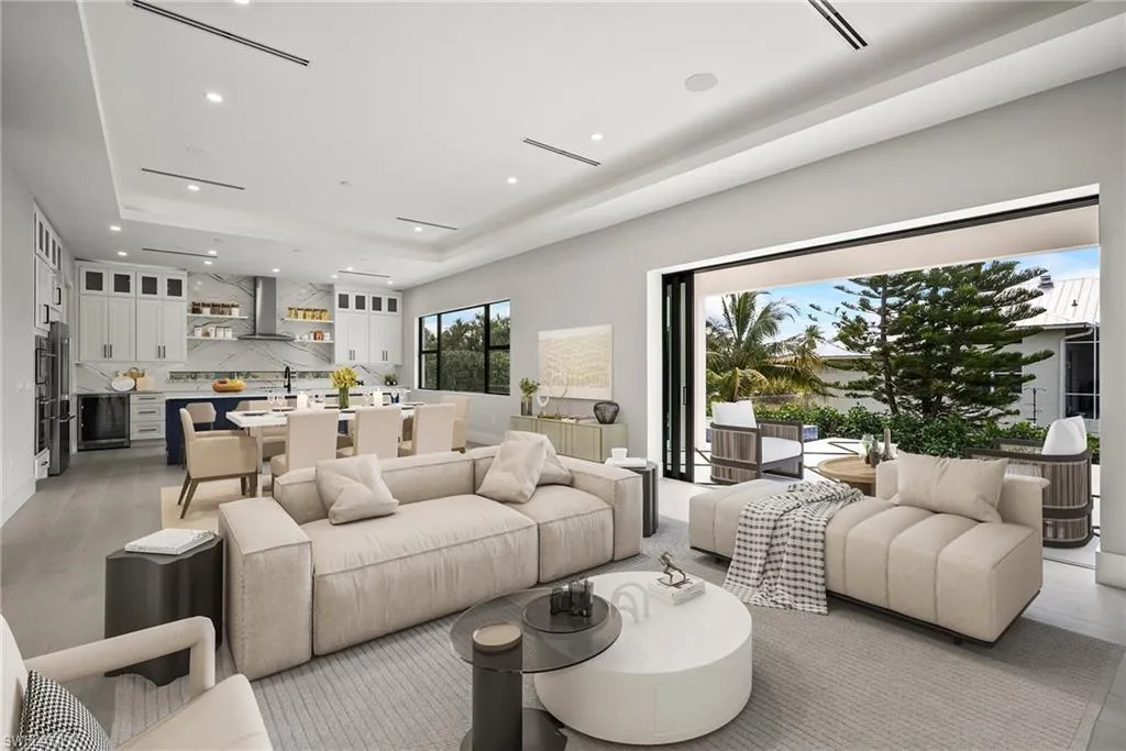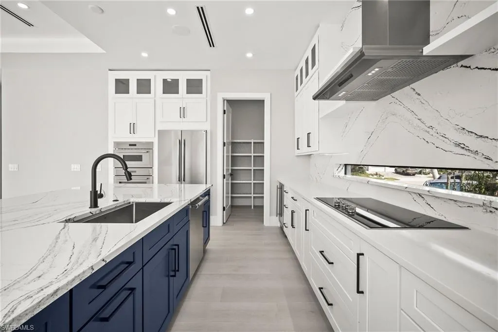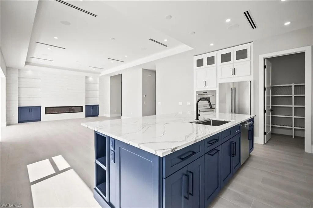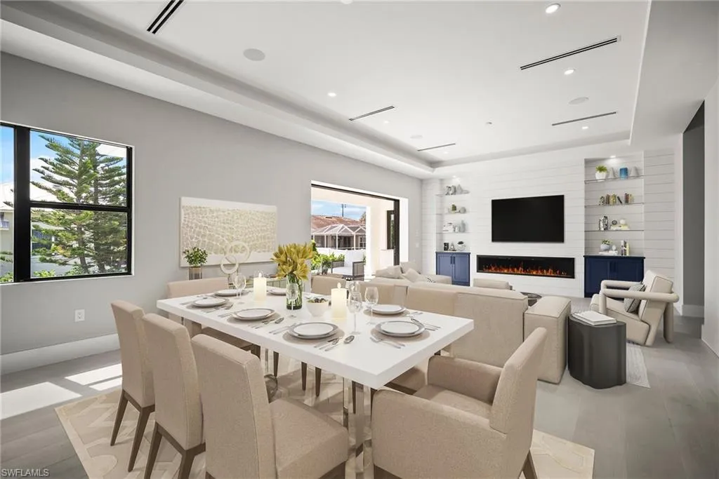 Luxury New Construction Home on Marco Island Embrace coastal sophistication in this newly constructed 3-bedroom, 3-bathroom home on Marco Island. Spanning 3,400 sq. ft., this modern home offers: Multi-zone Sonos audio system indoor and lanai area, Infinity edge pool with iaqualink, bubblers and water wall feature, Oversized garage fits boat, trailer or RV, EV charger in garage, 84 inch electric fireplace with heat, Thermador appliances indoor and outdoor kitchen, Coffered ceiling with multi color remote controlled ambient lighting in ceiling Main Bedroom and Great Room, Whole house surge protector, Custom European floating cabinetry, Outdoor shower, Upgraded travertine on lanai with artificial turf design, All bathrooms equipped with upgraded anti-fog mirrors with multiple color ambient lights,Oversized pantry with vented shelving, Hurricane rated sliding glass doors and windows throughout and so much more. The gourmet kitchen is a chef’s dream, featuring top-of-the-line Thermador appliances, quartz countertops and backsplash, custom cabinetry with under-cabinet ambient lighting for both style and functionality. The master suite is a serene retreat with a spa-inspired ensuite, while two additional bedrooms provide versatility for guests or a home office. A 5-zone Sonos audio system delivers premium sound throughout the home. Step outside to a resort-style paradise, complete with an infinity pool featuring bubblers and a striking water feature wall. The outdoor kitchen, equipped with premium Thermador appliances, elevates al fresco dining and entertaining. This seamless indoor-outdoor design embodies the ultimate tropical lifestyle. The oversized two-car garage includes spacious, oversize doors and a built-in electric vehicle charger, catering to modern convenience. Located minutes from Marco Island’s pristine beaches, world-class dining, and marinas, this home offers unmatched luxury and convenience. Schedule your private tour today!