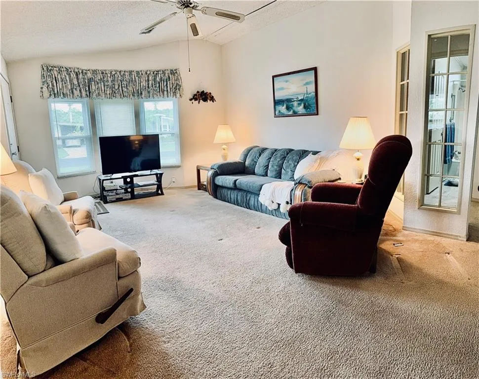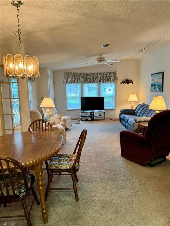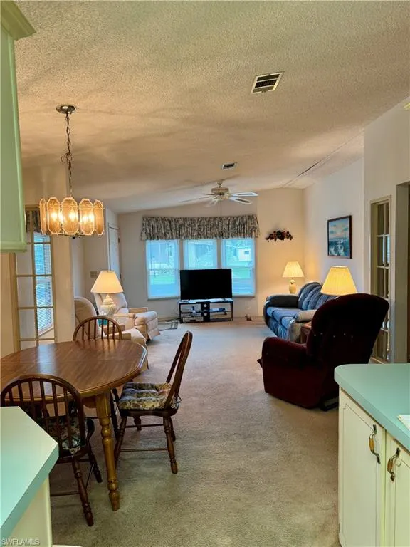 Over 1500 sf furnished manufactured home located in a Fabulous 55+ community in the heart of Southwest Florida! Property offers vaulted ceilings, 2 beds & 2 baths, main bedroom has den attached, living room, full sized kitchen with plentiful countertops and cabinetry, dining area, dining room, & Florida Room. Laundry inside the home off the kitchen. Large storage room included with covered parking. Newer HVAC (2024) unit with transferable warranty. Replaced skylights (2024). Most windows and doors replaced (2015). Sellers have a transferable home maintenance program. Purchase includes a Co-Op ownership share in Bonita St. James Village. Monthly HOA of just $95! Where else is paradise so affordable?! HOA fee covers a community pool, spa, community center, trash, lawn maintenance (inc mowing, edging, (2) tree maintenance) roads, fenced storage area and other common expenses. Minutes to dining, post office (.9 miles), library (1.8 miles), Bonita Beach (6.5 miles) and shopping. Come and experience the climate, history, culture and nature of paradise! Restrictions require one resident must be age 55 or above, the other may be age 45 or above. 118 homesites, approximately 1/3 occupied fulltime. Leasing w/restrictions. Pets w/restrictions. On-site management.