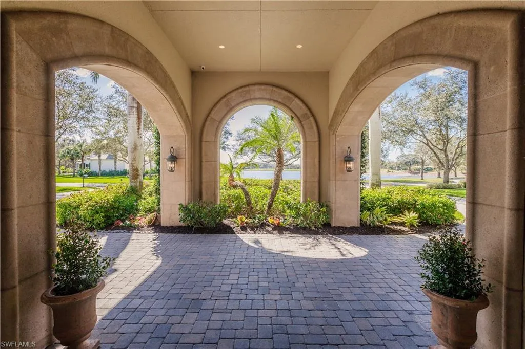 INCLUDES FULL GOLF MEMBERSHIP! This residence is absolutely stunning! With its expansive lot, picturesque lake and golf course views, and meticulous landscaping, it’s a true oasis. The attention to detail in its architectural design and craftsmanship is evident throughout its 5,071 sq ft of living space. The inclusion of 4 bedrooms, 2 offices, 5 baths, and a spacious 4-car garage ensures both luxury and practicality. The rotunda entryway sets a grand tone, leading seamlessly to an outdoor courtyard and connecting to the open great room, kitchen, and dining area, perfect for both everyday living and special occasions. And with a total of 8,532 sq ft that includes an impressive colonnade structure, oversized pool and spa, fireplace, full outdoor kitchen, and multiple seating areas, it’s designed for ultimate relaxation and entertaining. The addition of a private guest bedroom suite with a wet bar, bath, and sitting area adds an extra layer of luxury and convenience for guests. And with features like stone flooring, custom woodwork, tray ceilings, a lighting system, and security cameras, every detail has been carefully considered to create a truly exceptional living experience. Located in the TwinEagles private golf community, which has recently undergone a significant $30,000,000 renovation, including a new clubhouse, bocce facilities, and upgrades to the golf course, this residence offers not just a beautiful home but also access to a vibrant and upscale community lifestyle in Southwest Florida.