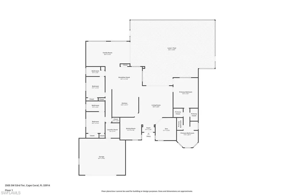 Welcome to 2505 SW 53rd Terrace, a beautifully updated 3-bedroom + den, 3-bathroom pool home tucked away on an oversized triple lot in one of Southwest Cape Coral’s most desirable neighborhoods. This is Florida living — modern, efficient, and close to everything. This beautiful home has two living rooms, one facing the canal for amazing views!