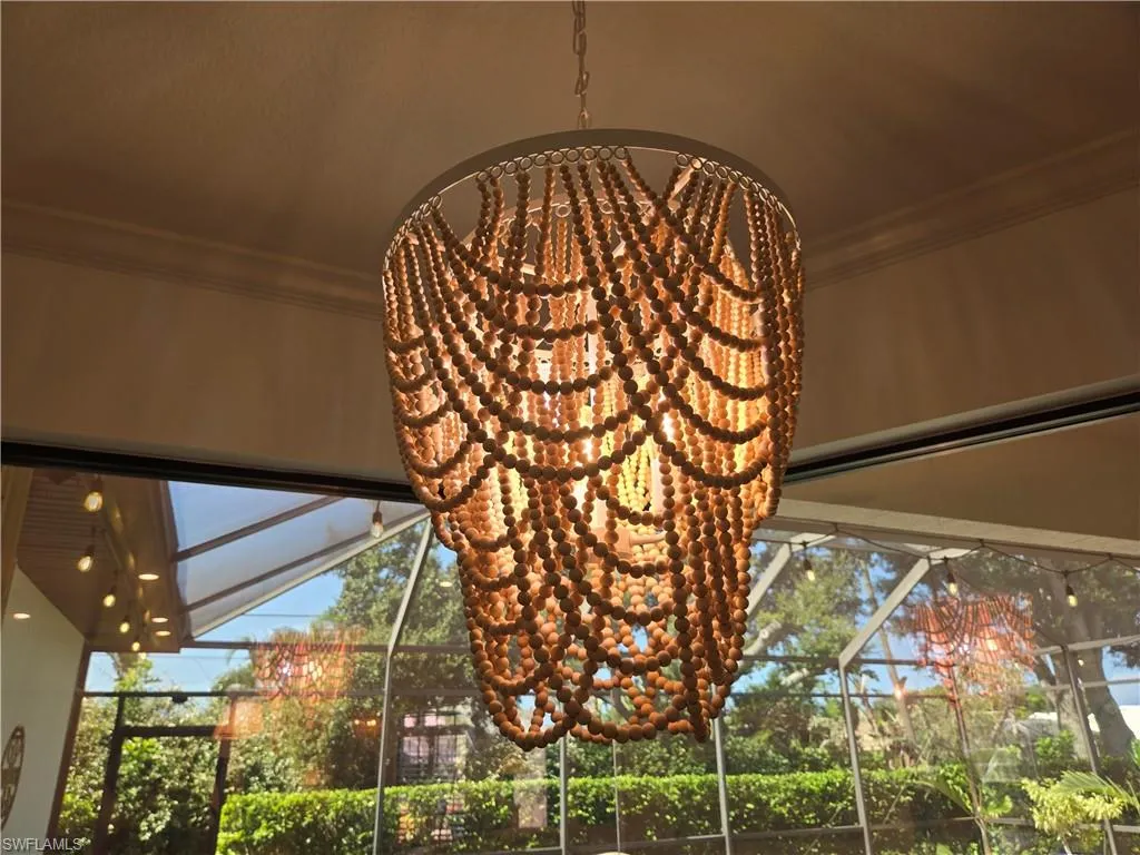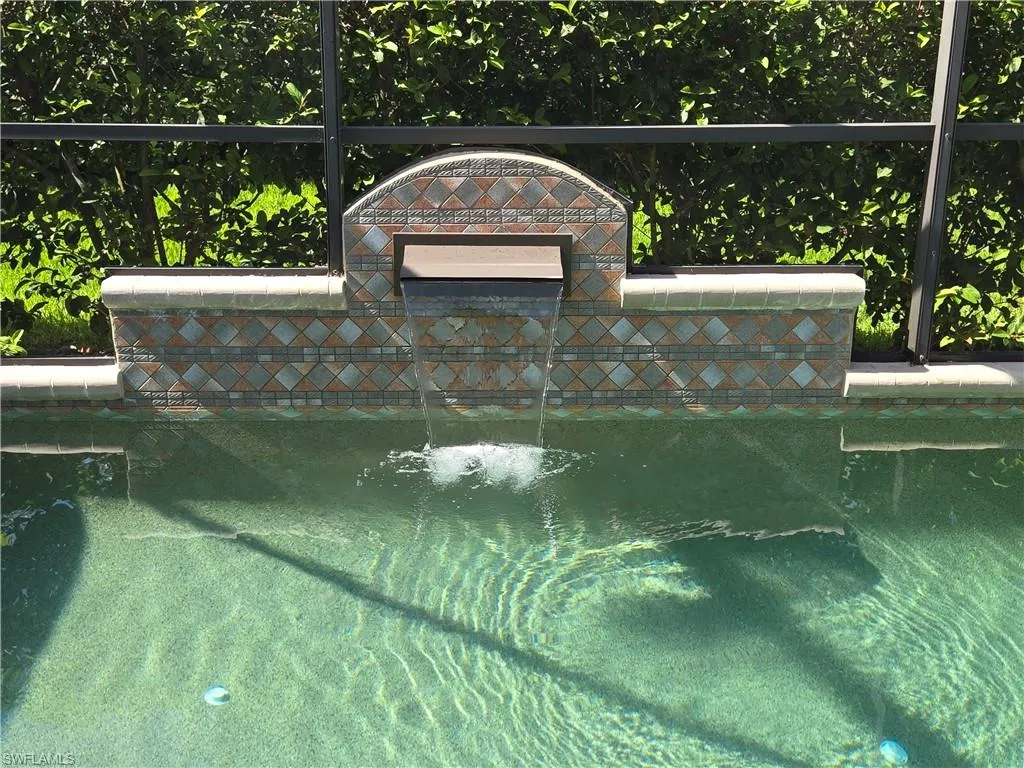 Additional features include accordion shutters and Lexan panels for hurricane protection and a private irrigation well to maintain lush landscaping. Pocket sliders open wide to seamlessly connect indoor and outdoor living, revealing a private paradise with lush landscaping and the sparkling pool. The pool features a self-cleaning system, a recently updated pump, and a decorative water feature.