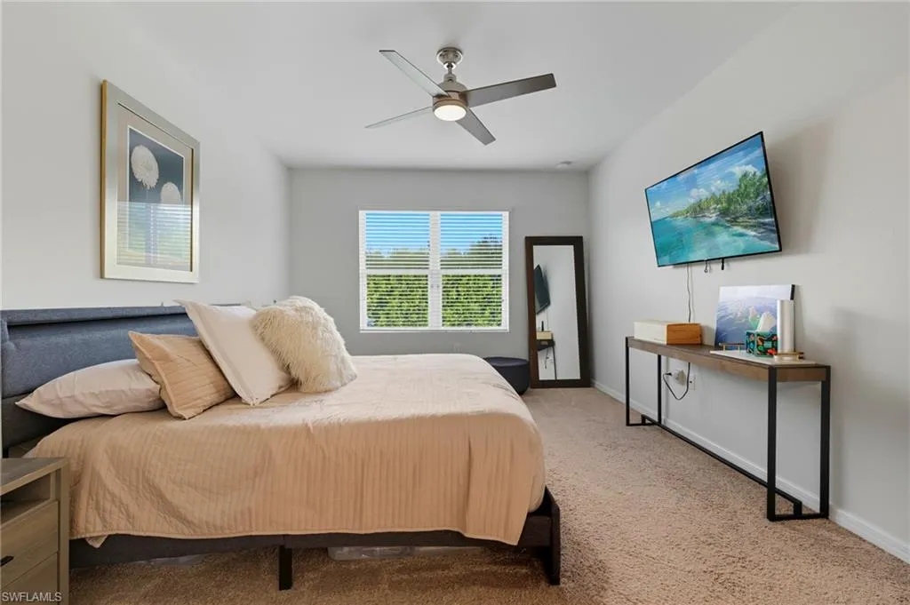 As the NEWEST and ONLY 4 BED/ 2 BATH POOL home in the community, you will not find another home in the area that compares! With exceptional interior and exterior upgrades (completed within the last few months), a CUSTOM DESIGNED pool/spa, located on an oversized corner lot, and unbeatable location, this property is a RARE FIND. Located in the heart of Bonita Springs, just a short bike ride Downtown Bonita Springs, Sugar Shack, boutique shopping, and the beach. With no HOA, NO flood zone, NO rental restrictions, and no hurricane damage, this upgraded property is perfect for first time home buyers, growing families, a vacation home, or a great investment opportunity. The exterior is made for outdoor enthusiasts featuring a 2-car garage with a built-in office, its OWN mini split, abundance of storage, fully extended paver driveway, fresh exterior paint, new roof (2023), hardwired security cameras, backlit house numbers, full irrigation system, mature landscaping, and standby generator integrated into the electrical panel. The backyard is a showstopper, located on an oversized corner lot, fully fenced in with clusia privacy shrubs surrounding, large grass area on one side of the yard, and paved/graveled on the other side with plenty of space for boats, trailers, RVs, you name it! Entertain on your extended lanai or relax in the custom designed and heated saltwater pool & spa featuring a sunshelf, waterfall, water features, handpicked porcelain pavers, and app-controlled LED Lighting, Pentair equipment, plus an additional covered lanai with a recently installed awning. Inside, the open, split floor plan features upgraded tile flooring, fresh interior paint, high-end lighting, ceiling fans, and upgraded window coverings. The renovated kitchen boasts custom wood cabinetry, stainless steel appliances, oversized quartz island and countertops, quartz backsplash, walk-in pantry, coffee bar, and recessed lighting—all flowing seamlessly into the dining and living areas with sliders to the lanai.