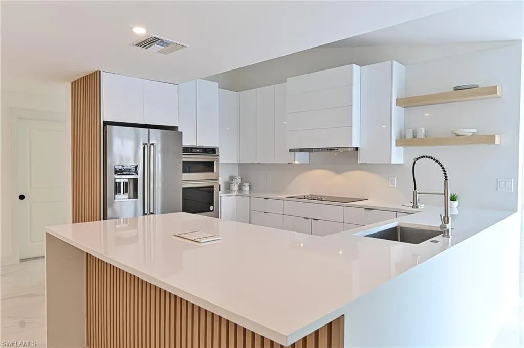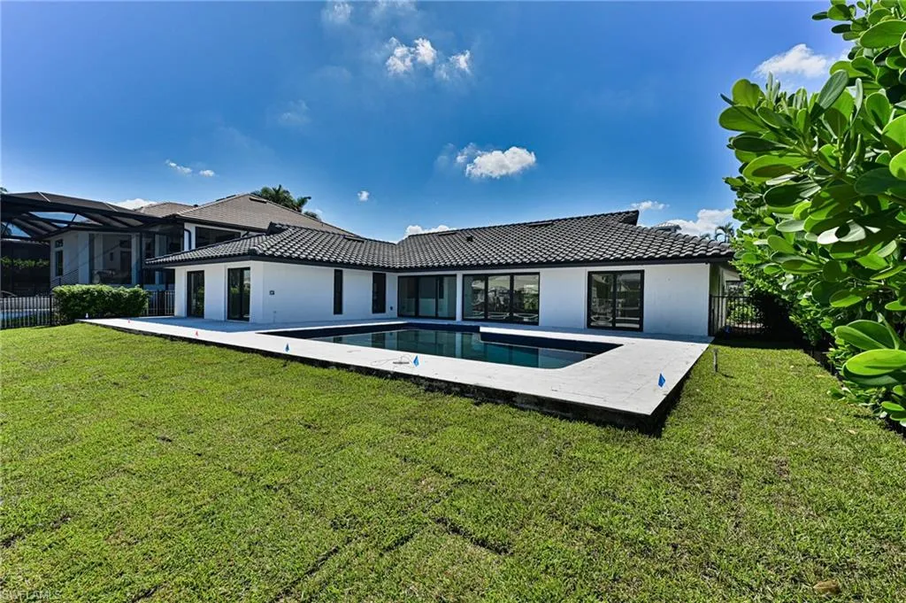 This renovated Vanderbilt canal home has just been completed, is move in ready and offers the ultimate Naples Florida lifestyle at an affordable price. This homes desirable location offers premier boating right out your back door via a covered boat dock and lift with close Gulf access, a swimming pool overlooking the water, an easy walk to beautifully Vanderbilt Beach & Delenor Wiggins State Beach Park, and close to dining, entertainment, shopping and golf including Mercato, Old Naples and Waterside Shops. Features include open floor plan, vaulted ceiling, 4 bedrooms, 3 baths, all new kitchen with contemporary cabinetry, quartz countertops, top of the line appliances and new oversized porcelain flooring throughout. The new bathrooms offer the best in plumbing and light fixtures, floating wall cabinetry, mirrors and glass showers. The master bedroom suite bath offers two sink vanities, free standing tub and large glass shower. Concrete block construction with all new impact windows and doors, plumbing and electrical for peace of mind. Also of note is the newly sodded large yard for kids, grandkids or pets to play and a large 2 car garage. The thorough updating of this 1978 home resulted in Collier County determining its effective year built as 2005.