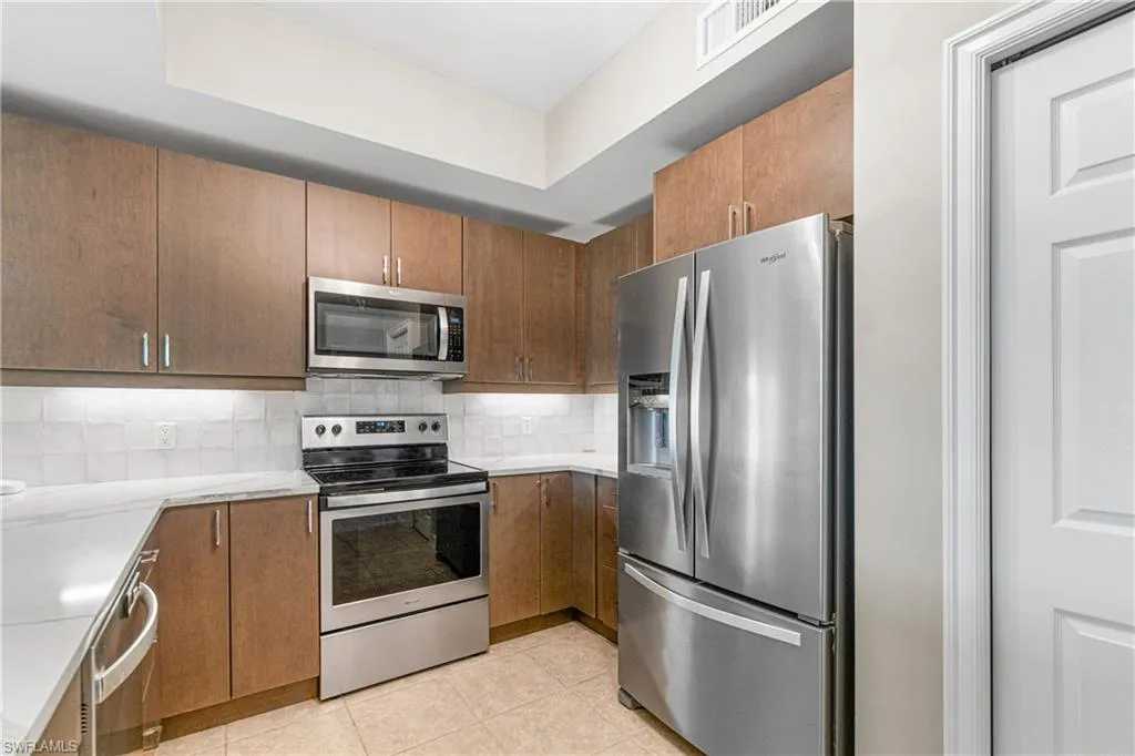 TURNKEY 3 Bedroom Vizcaya Model Condo & PRICED TO SELL NOW! This “End-Unit” Condo is located at the end of the Palazzo cul-de-sac on a Premium Privacy Lot. PRIVATE & PEACEFUL plus IMPACT WINDOWS & DOORS! This Beautiful Home has recently been Professionally Painted plus New Modern Cabinets added throughout the Home w/Soft-close Drawers! Amazing One-level Quartz Countertop added in the Kitchen & even both Bathrooms. The Stainless-steel Whirlpool Appliances are less than 3 years old. IMPORTANT: A.C. is 2023 & the Hot Water Heater is 2020. Review of the Updates: (1.) LIVING ROOM: Totally Open Concept plus Accordion Privacy Blinds & Updated Modern Lighting! (2.) KITCHEN: Tray Ceiling w/Modern Lighting plus dimmer switch, Large Walk-in Pantry, Beautiful One-level Quartz Countertop & NEW MODERN CABINETS w/Soft-close Drawers. (3.) MASTER BEDROOM: Impact Resistant Tinted Sliding Doors to the Lanai, Tray ceiling & Beautiful Privacy Curtains (4.) MASTER BATHROOM: Quartz Countertop & New Modern Cabinets w/Soft-close Drawers & a Large Walk-in Shower (5.) LANAI: Trifecta View: LAKE, GOLF & PRESERVE, IMPACT WINDOWS & DOORS/Tinted & 3 Panel Sliding Doors. Bonus: Even All the Beautiful Lanai Furniture Remains! (6.) NOTE: Even the Laundry Room has been updated with the New Modern Cabinets! (7.) The Large Storage Room is a Plus! IMPORTANT: Palazzo Residents & their Family & Friends get to Enjoy their very own Private Pool–ONLY FOR PALAZZO! YOUR FUTURE HOME IS LOCATED IN PELICAN PRESERVE ONE OF THE TOP 55+ COMMUNITIES IN THE U.S. LOCATED NEAR SWFL INTL. AIRPORT, SHOPPING & THE BEACHES!