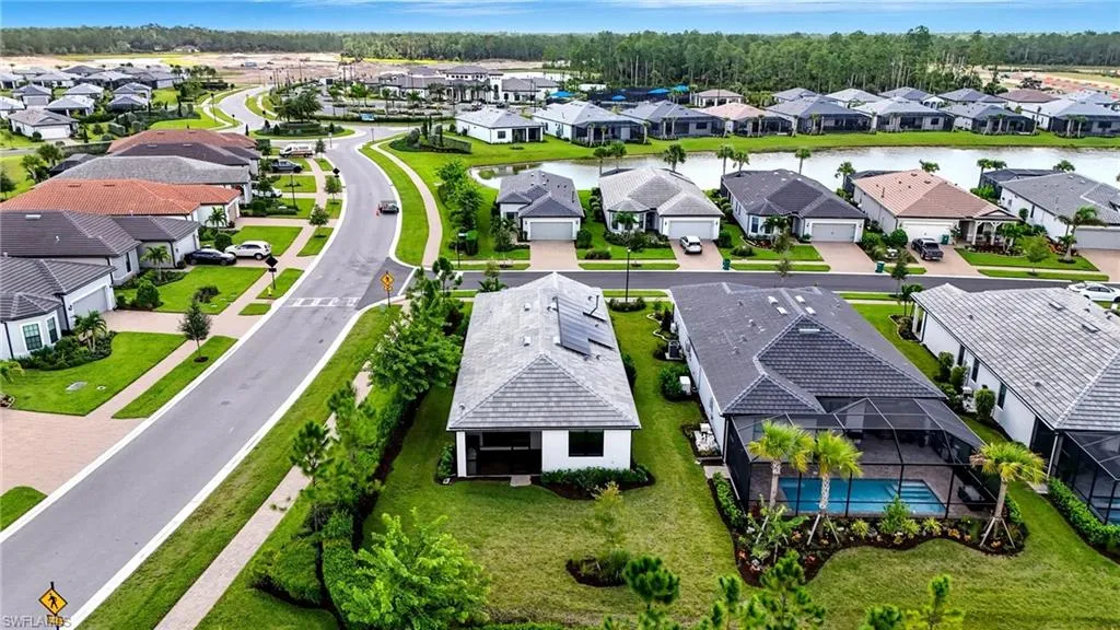 Equipped with impact windows, solar power, and a built-in outdoor kitchen ideal for year-round entertaining this home is Elevated from the base model! Welcome to Terreno, an amenity-rich, gated community by Pulte/DiVosta offering resort-style living here in Naples! This beautifully designed “Scenic Series” residence on Amador Court features 3 bedrooms, 2 full baths, and upgrades throughout! Spacious backyard allows new owner to build dream pool/spa! Enjoy tranquil privacy with no neighbors on one side, allowing sunlight and lush greenery to fill every window. The community’s landscaping and serene streetscapes create a picturesque setting surrounded by nature, while residents enjoy access to golf, pickleball, tennis, dog park, playground, resort-style pools, and the Olive & Thyme restaurant at the clubhouse. Terreno is one of Naples’ few natural gas communities, combining energy efficiency with luxury design — a perfect blend for modern Florida living.