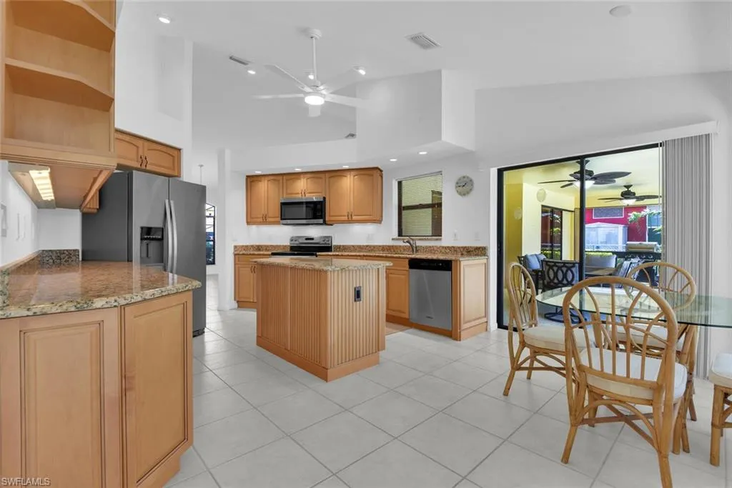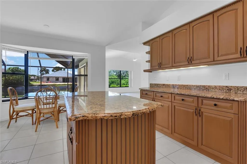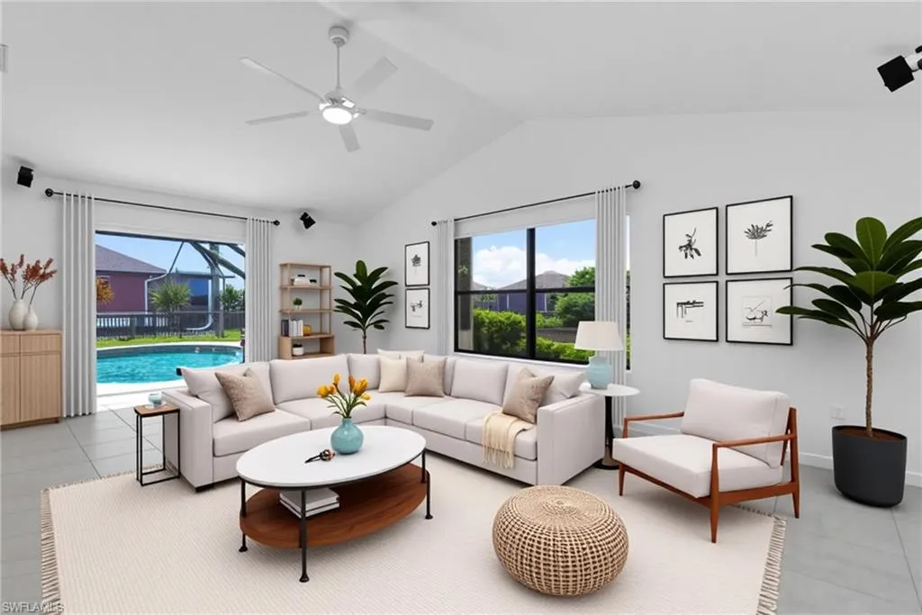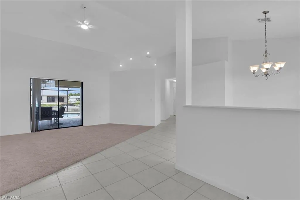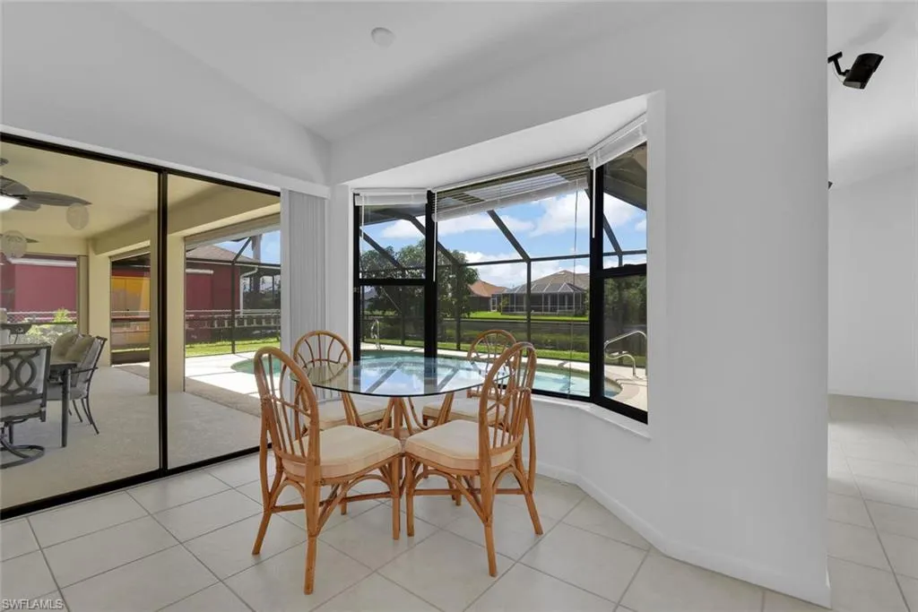 Amazing waterfront home situated on a fresh water canal that is ideal for those who love to kayak, fish, & boat right from your backyard. NOT IN A FLOOD ZONE & THIS HOME HAS NEVER TAKEN IN WATER FROM A STORM! With city water & sewer PLUS all assessments paid this home features a classic & living room layout, spacious kitchen w/ breakfast nook & island, disappearing sliders, formal dining area, French door front entry, split bedroom floor plan, master suite that has private entry to the pool lanai, one of the guest rooms is extended giving you a perfect area for home office, amazing outdoor living space that includes a long covered sitting area, and cement boat dock. Meticulously maintained home w/ recent updates that include- NEW 4 TON A/C UNIT RECENTLY INSTALLED! WARRANTY AND a 2 YEAR MAINTENANCE AGREEMENT INCLUDED & TRANSFERABLE, new carpeting, new pool cage including screens & hardware, new screen doors in 2023, the roof was replaced in 2020, and a new garage door opener in 2023. Storm protected by a combination of electric shutters, accordion style storm shutters, and clear manual shutters. Very convenient location w/ easy access to both the Midpoint & S Cape Coral bridges, surrounded by tons of shopping/dining options, minutes from public library, and only a short drive to community parks & boat docks.