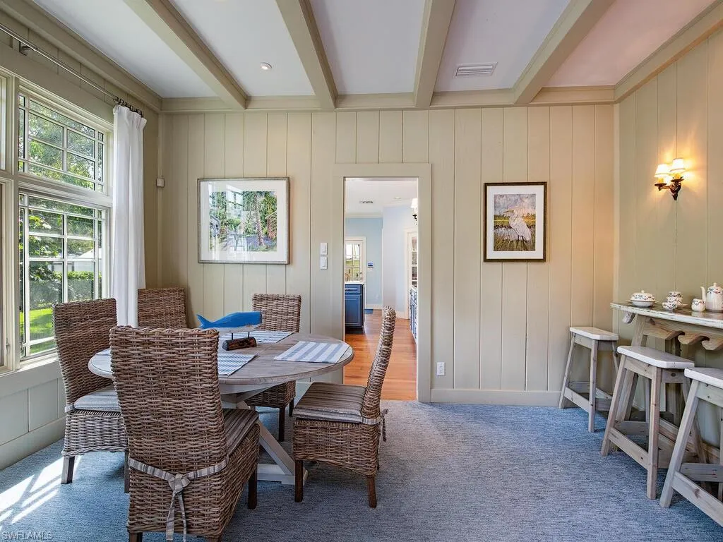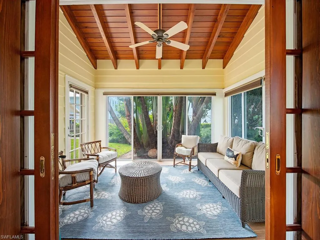 Nestled on the beach block right in the heart of Olde Naples, this historic Florida cottage offers timeless charm on a spacious 100’ x 151’ corner lot. Built in 1940 and crafted from locally milled heart pine and cypress, the home embodies the inviting coastal lifestyle that first drew families to Naples. Inside, a wood-burning fireplace warms the combined living and dining room, while French doors, vaulted ceilings, and a sun-filled solarium add character and comfort. The master suite includes a sitting room and library/media space, complemented by two guest bedrooms and a newly remodeled kitchen overlooking lush gardens. A detached garage with a one-bedroom guest apartment provides additional flexibility. With its enviable location on the beach block, this residence offers a rare opportunity to enjoy classic Old Naples living or to reimagine the site for a future luxury home.