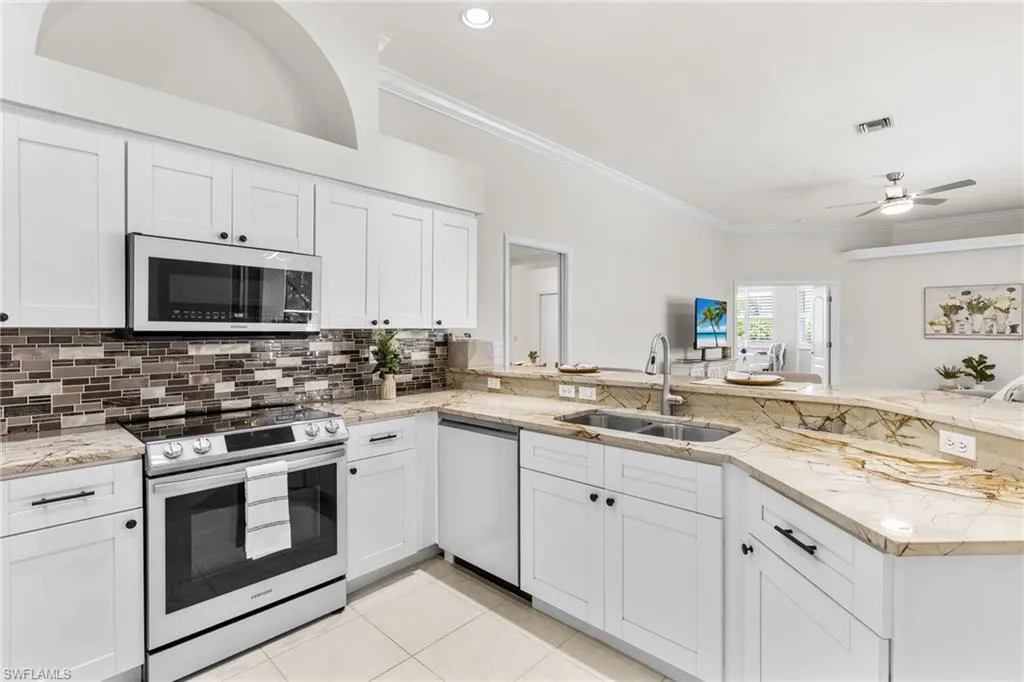 Here’s your chance to finally start living your best Florida life in SMART LUXURY! This UPSCALE GEM in Cross Creek Estates is a RARE FIND–with OVER $300k IN RECENT UPGRADES, an EXPANDED 3-CAR GARAGE, a POOL, and all in ONE STORY under a 50-year STONE-COATED STEEL ROOF! There are too many upgrades to list, so please check out the features list! Imagine coming home and being greeted by a PAVER drive and plugging your car into the TESLA CHARGER. Greeting your guests at the front door? It is PERFECT FOR ENTERTAINING after all! They’ll be enamored with the MARBLE INLAY in the formal sitting room. Light and bright, this home captures the Florida sun just right, while the NW exposure offers a delightful blend of refreshing morning sun and fiery, picturesque sunsets. The kitchen is a showstopper with BESPOKE SAMSUNG APPLIANCES and ample custom white shaker soft-close cabinets and countertops. The OPULENCE flows seamlessly to the breakfast nook that features a UNIQUE, FULL-LENGTH BAY WINDOW offering cascading views out to the private, PAVER pool deck. With a LAUNDRY ROOM that has a sink, split floorplan, 4 bedrooms including GUEST SUITE off the POOL BATH, this ~2500sqft home is certain to check all your boxes! Tile & updated lighting throughout. All 3 baths are updated with custom cabinets & counters, frameless glass showers, and LIGHTED/HEATED MIRRORS. Enjoy decorating for any and every holiday? This home is equipped with SMART EXTERIOR TRIM LIGHTING for a convenient and safe way to celebrate or simply enjoy a daily warm glow. Cross Creek offers world-class amenities including a pool/spa, pickleball, tennis, bocce, a NEWLY EXPANDED GYM, and more–plus you can get a GOLF MEMBERSHIP at the Country Club for ~$1,000/year! Not enough? This highly coveted neighborhood is perfectly positioned between the Twins’ and Red Sox’s training stadiums, minutes away from endless opportunities for shopping, dining, and entertainment, and only a short drive to RSW International Airport and the white-sand beaches of SWFL! All the amenities, prime location, NO CDD, and NO FLOOD INSURANCE REQUIRED have garnered this home the title of a “BEST VALUE BUY.” Don’t miss out–this ALLURING property won’t last long!