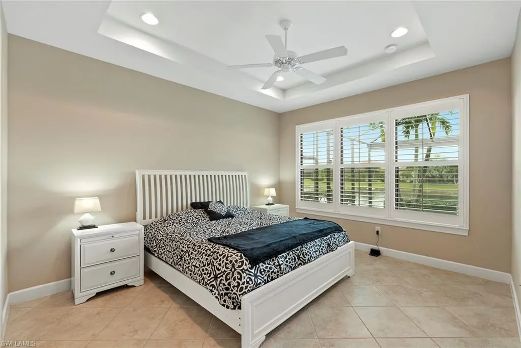 Welcome to your serene Naples retreat! This beautifully turn-key furnished 3-bedroom + den, 2-bath single-family home offers captivating lake and pool views the moment you step inside, setting the tone for relaxed, resort-style living. Enjoy indoor-outdoor living year-round with a spacious, covered lanai featuring a natural gas grill, perfect for cookouts and entertaining. The private pool and tranquil water views create your personal oasis in one of Naples’ most sought-after gated communities. Inside, you’ll love the elegant finishes including 10-foot ceilings, tray ceilings with recessed lighting, and custom crown molding throughout. IMPACT GLASS! The gourmet kitchen is a chef’s dream with granite countertops, pantry, newer stainless-steel appliances, and a gas range. Host dinner parties in the adjacent formal dining room! The owner’s suite features tranquil lake views, a walk-in shower with a glass enclosure, double sinks on a granite vanity, and a huge walk-in closet! The split-bedroom layout provides privacy and includes two guest bedrooms with a large bath with double sinks on a granite vanity. The flexible den/home office with French doors provides quiet workspace or additional room for guests. The laundry room features granite countertops, and newer washer and dryer (2-year-old.) A/C and water heater are also 2 years old. Gas-powered pool heater, range, and outdoor grill. The spacious 2-car garage offers plenty of storage. The Esplanade at Hacienda Lakes offers resort-style amenities with a clubhouse hosting planned social events, a state-of-the-art fitness center, a heated resort-style pool and spa with cabanas, a fire pit, tennis and lighted pickleball courts, a playground and a dog park. Ideally located just minutes to Naples iconic 5th Avenue & Third Street with world-class restaurants, shopping and beaches. Or a short drive to the beautiful beaches of Marco Island and the fantastic island restaurants of Marco and Isles of Capri! The Esplanade is NOT in a flood zone!