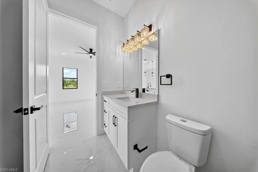 Other highlights include modern black hardware, epoxy-finished garage flooring, tankless water heater, and upgraded tropical landscaping with palm trees. Conveniently located just minutes from State Road 82, shopping, and dining this home offers a move-in-ready lifestyle built for the modern Florida homeowner.