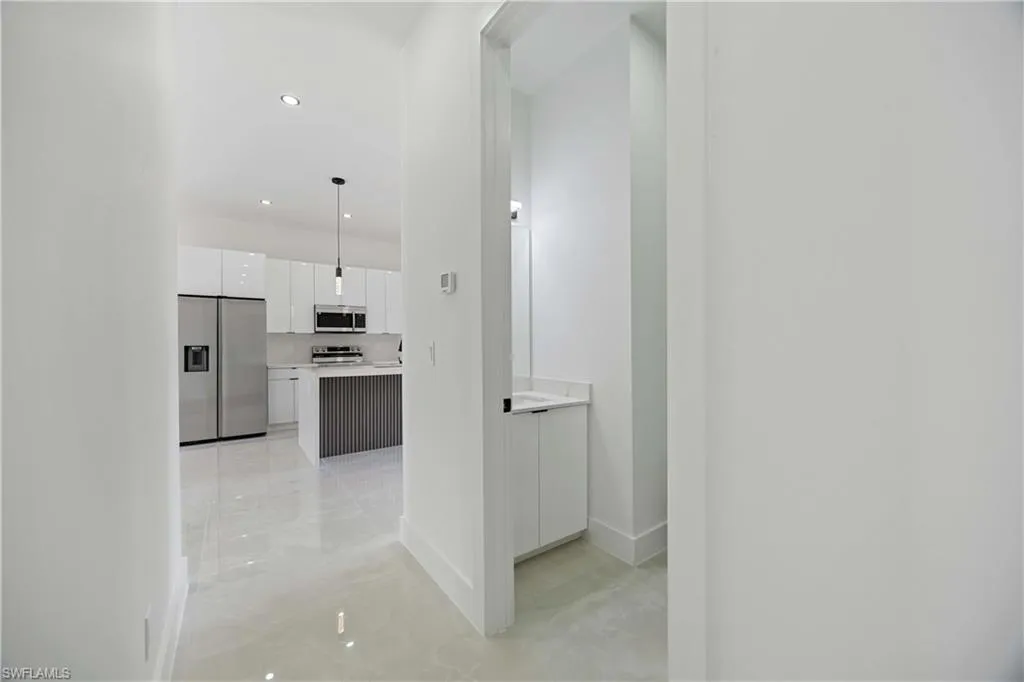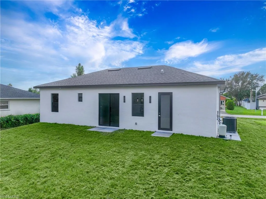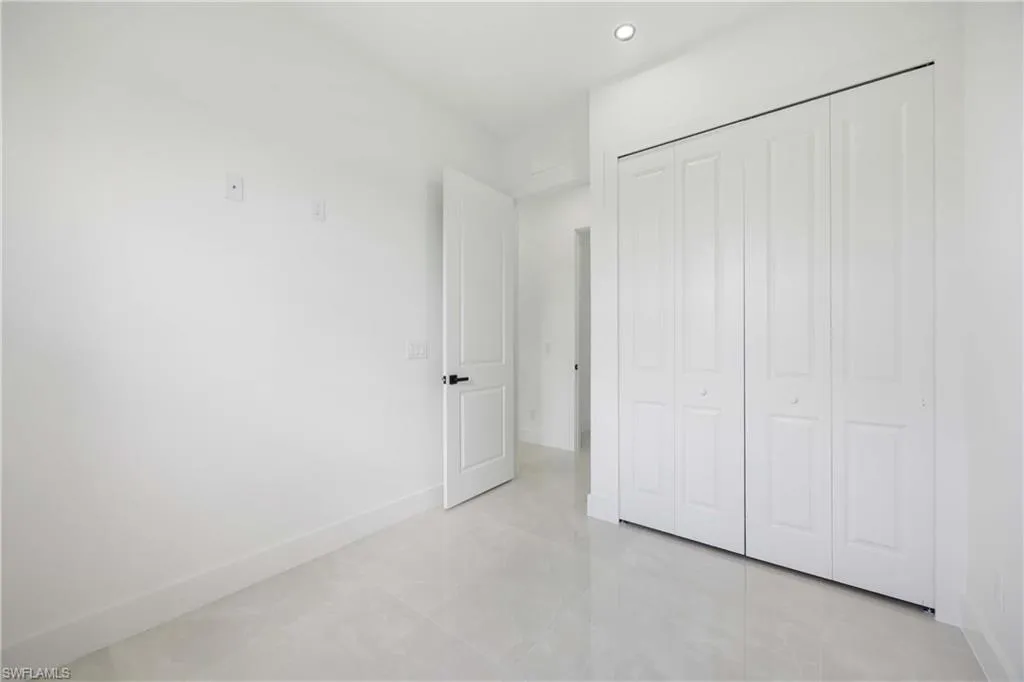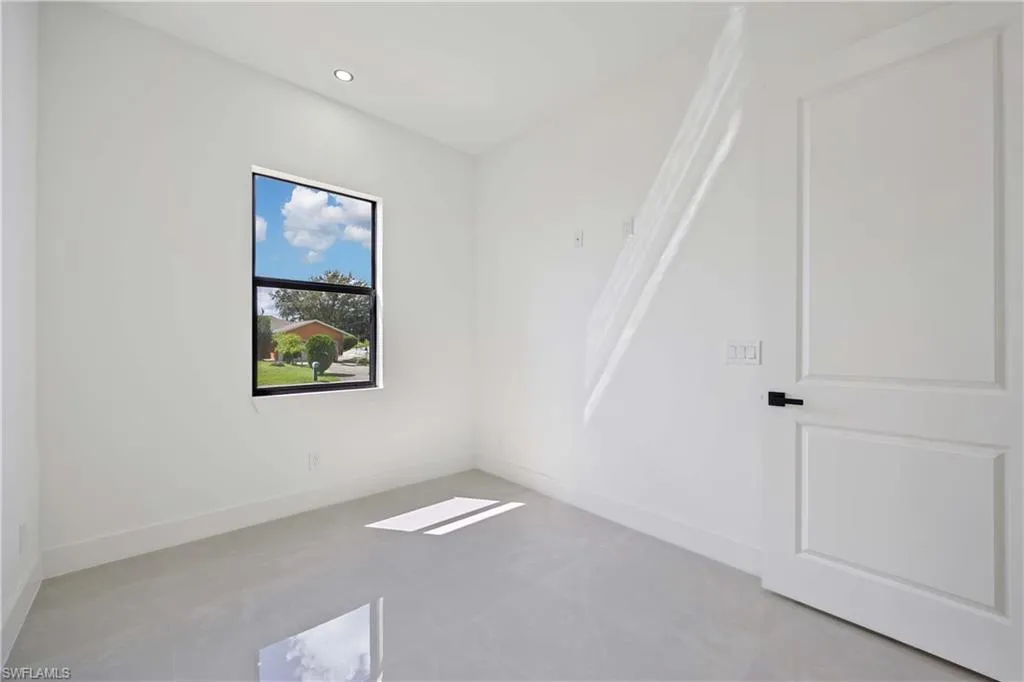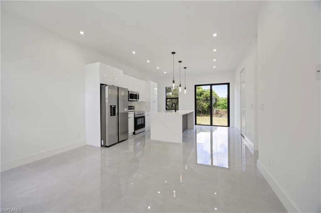 NEW CONSTRUCTION, luxurious contemporary home with plenty of room for parking and located in the heart of Lehigh Acres. This home is impeccably designed and built with attention to every detail. All lights throughout the home are LED, all doors and windows are high impact and includes a sprinkler system. The open floor plan seamlessly blends indoor & outdoor living. Third bathroom is next to the garage, which makes it easily converted into a mother in law suite. Impeccable white 36×36 porcelain title floors with membrane under tile, which prevents cracks from wear and tear. Expansive living room with high 8″ interior and exterior doors. The kitchen boasts gorgeous 42″ solid wood soft close cabinets with quartz countertops, a broad counter height island along with stainless steel appliances. This home is close to shops, restaurants, schools and THE BEST SW FLORIDA CAN OFFER.