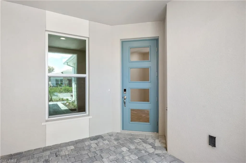 Welcome to your dream home in beautiful Naples, Florida! This stunning new construction paired villa offers luxury living at its finest with the highly sought-after Meranti floor plan featuring 2 bedrooms, 2 full bathrooms, a flex space, and a spacious 2-car garage — all within 1,601 sq ft of thoughtfully designed living space. Step inside and experience an elegant open-concept layout, highlighted by a gourmet kitchen complete with quartz countertops, stainless steel appliances, gas cooktop, and ample cabinetry — perfect for both casual meals and entertaining guests. Enjoy your morning coffee on the welcoming open front porch, and later unwind in your private, southern-exposed backyard patio surrounded by lush tropical landscaping — offering all-day sun and plenty of space to add a pool post-closing. Built for comfort and durability, this villa includes hurricane impact windows and doors, a full builder warranty, and construction to the latest building codes. Located just a short walk to the community’s Amenity Center, where you’ll find a resort-style pool, clubhouse, fitness center, putting green, and a dedicated lifestyle director to elevate your experience. Live minutes from Naples’ iconic Fifth Avenue, world-class dining, shopping, vibrant nightlife, and beautiful Gulf Coast beaches — with Marco Island just a short drive away. See MLS supplements for detailed floor plan and interior design selections. Lot 29. Ask your sales consultant about our exclusive rate buydown program and how it can help lower your monthly payments!