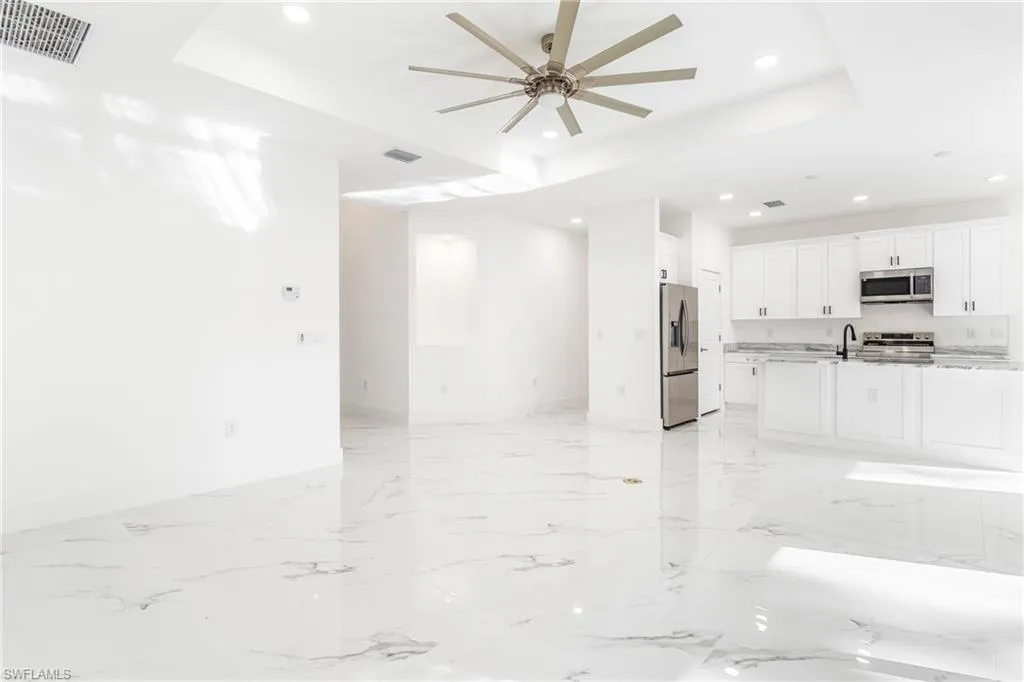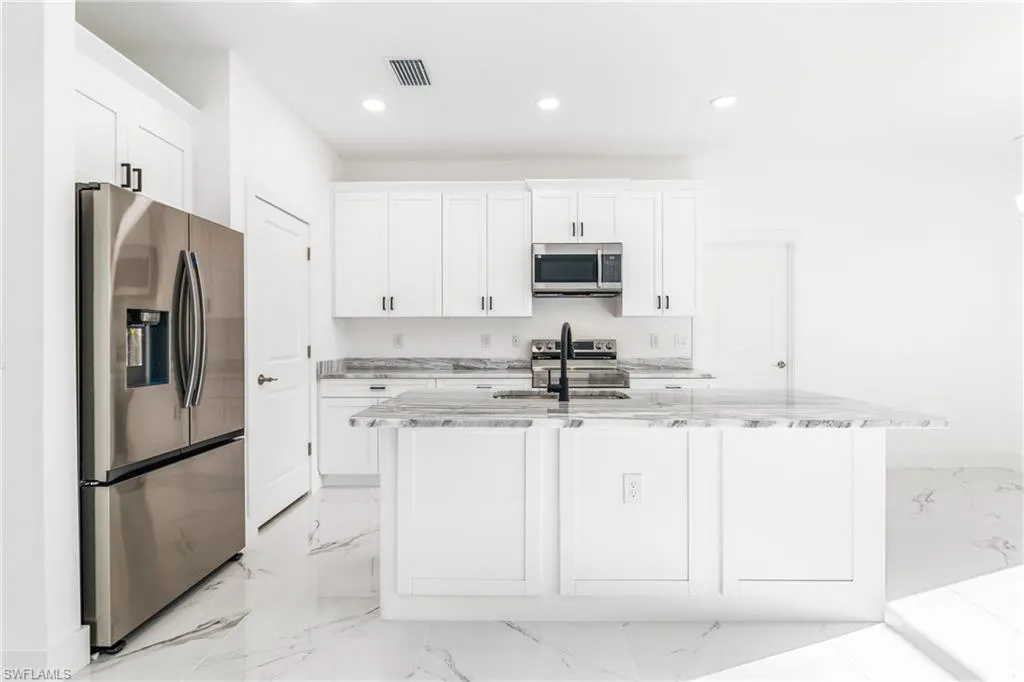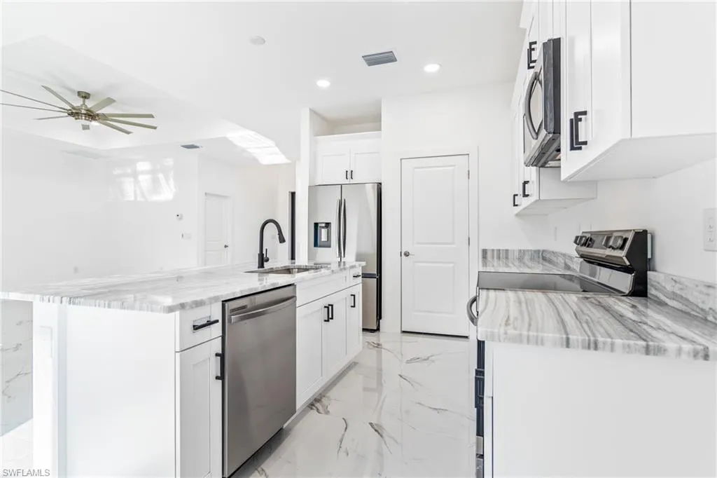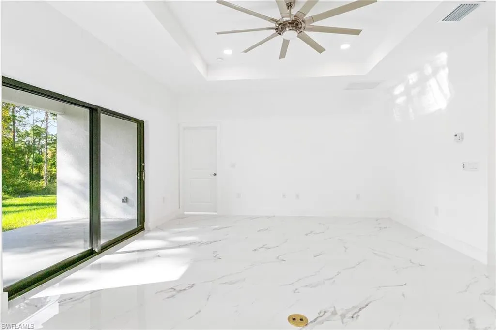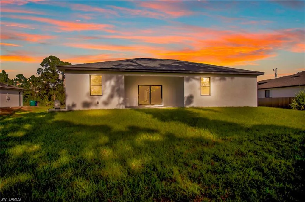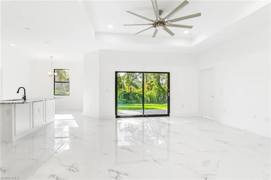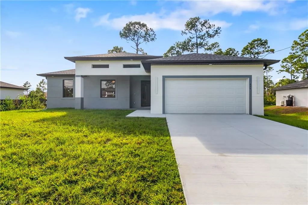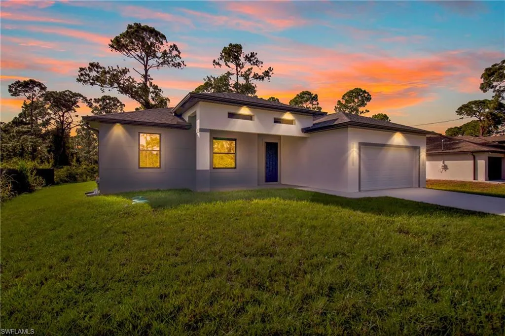 Welcome to this beautifully designed, newly constructed 4-bedroom, 3-bathroom home in the heart of Lehigh Acres. Perfectly blending modern style with sleek finishes, this home offers spacious living with a contemporary flair. As you enter, you’ll immediately notice the elegant tile flooring that flows seamlessly throughout the home, creating a clean and cohesive look. The open-concept living area is ideal for both relaxing and entertaining, while the gourmet kitchen features high-end finishes, including stainless steel appliances, ample cabinetry, and a large island. The master suite is a true retreat, complete with a luxurious end-suite bathroom featuring a walk-in shower and dual vanities. Each additional bedroom is generously sized with plenty of natural light and closet space. With 3 full bathrooms, there’s plenty of room and convenience for family and guests. A 2-car garage provides secure parking and extra storage space. Whether you’re hosting a gathering or enjoying a quiet evening, this home offers the perfect setting for modern living. Located in a growing neighborhood, this property is just minutes from shopping, dining, and local parks.