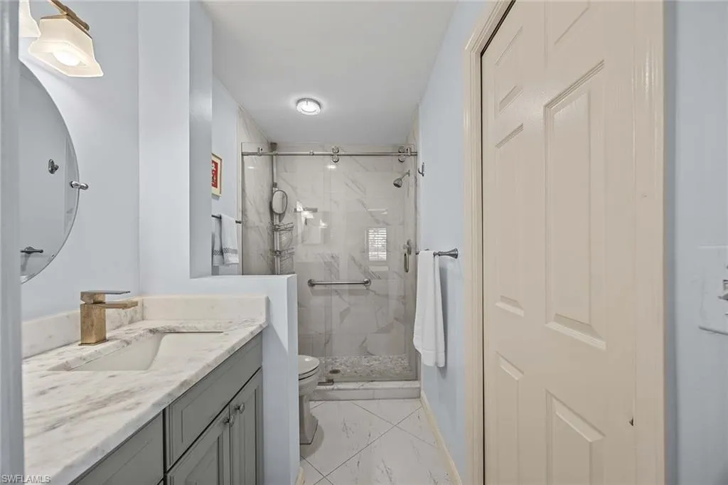 Welcome to Andover Square in Royal Wood Golf & Country Club – A Hidden Gem in the Heart of Naples tucked away in the serene enclave of Andover Square, this beautifully updated condominium offers a perfect blend of elegance and coastal charm. From the moment you step inside, you’re greeted by 28-inch diagonal tile flooring throughout and a thoughtfully designed split floor plan that provides comfort, privacy, and style. The gourmet kitchen features gorgeous quartz countertops, stainless steel appliances, and opens seamlessly to the spacious living and dining areas. Enjoy the airy ambiance created by vaulted ceilings, designer lighting, and plantation shutters adorning every window. Retreat to the primary suite, a tranquil haven complete with a quartzite custom sink, coastal-inspired tiled shower, and a generously sized walk-in closet. Additional highlights include a large laundry room with extra cabinetry and storage. Take in breathtaking views of the 10th hole and sparkling lake with fountain—some of the best vistas in the community—right from your own home. Residents enjoy access to Royal Wood’s recently renovated clubhouse, offering both formal and casual dining, a modern fitness center, and a full suite of resort-style amenities. Within Andover Square itself, you’ll find a private pool, barbecue area, bocce ball, pickleball courts, and lively social activities that foster a warm community spirit. Ideally located just minutes from Marco Island, 5th Avenue South’s fine dining, world-class shopping, and Naples’ famous white sand beaches, this property offers exceptional value in one of Southwest Florida’s most sought-after bundled golf communities. Don’t miss this opportunity to live the Naples lifestyle in one of Royal Wood’s most desirable locations.