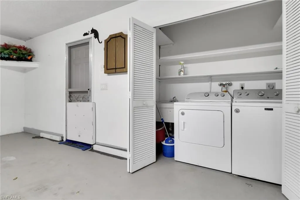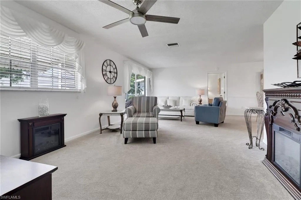 Welcome to 7032 Cedarhurst Drive, a beautifully maintained end-unit villa in one of South Fort Myers’ most desirable 55+ communities. This turnkey home offers 1,400 sq. ft. of living space with 2 spacious bedrooms, a versatile den with its own half bath, and 2.5 bathrooms in total. Both bedrooms feature en-suite accommodations, while the open family and dining areas flow seamlessly to a bright windowed-in lanai, perfect for year-round enjoyment. A rare long driveway and attached 2-car garage add convenience, and the solid construction ensures lasting quality. Myerlee residents enjoy a pool, shuffleboard, and a public pay-as-you-play golf course—all in a prime location close to everything Fort Myers has to offer.