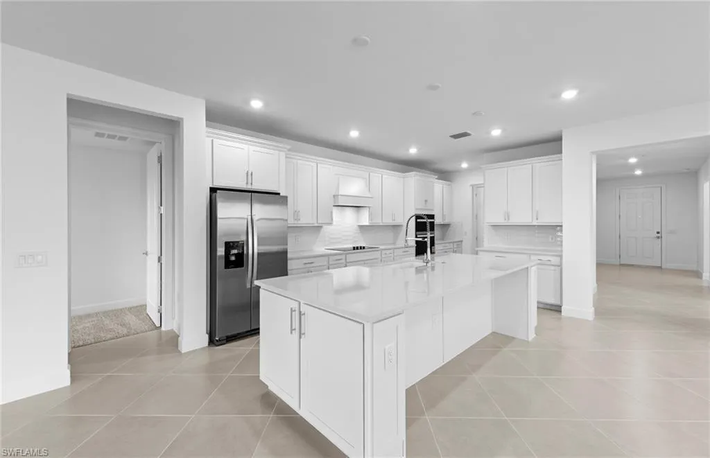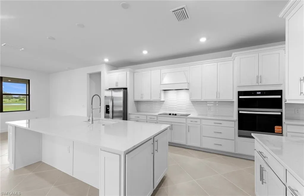 This stunning Renown floorplan offers 3 bedrooms, 3.5 bathrooms, a den, and a 3-car garage, combining spacious design with elegant finishes throughout. Each bedroom is a private en suite with its own walk-in closet, providing comfort and convenience for all. The home features a large kitchen with built-in appliances, a walk-in pantry, and white cabinetry paired with quartz countertops, perfect for both everyday living and entertaining. 22″x22″ tile flooring flows through the main living areas. An epoxy finish in the garage provides durability and a polished look, completing this thoughtfully upgraded home. Nestled within the gated, 1,500-acre master-planned community of River Hall Country Club, residents enjoy a wealth of resort-style amenities. The exclusive Bunker Bar offers a full-service, open-air experience overlooking a lagoon-style pool with private cabanas. The 14,000 sq. ft. clubhouse features a state-of-the-art fitness center, aerobics room, game room, arts & crafts space, and more. Sports enthusiasts can take advantage of two bocce courts, two Har-Tru tennis courts, and four pickleball courts, while an on-site Activities Director ensures a vibrant community atmosphere. Golf lovers will appreciate the Davis Love III-designed semi-private 18-hole course, bundled with homeownership, along with top-tier practice facilities. The River Hall Country Club clubhouse also features the Caloosa Grille, a bar, a golf shop, and locker rooms with personal storage.