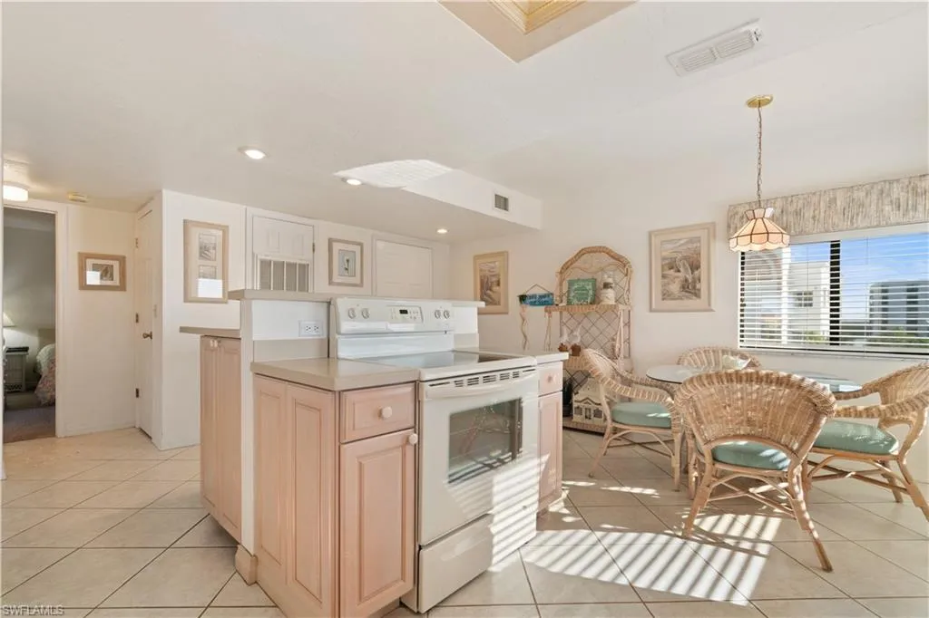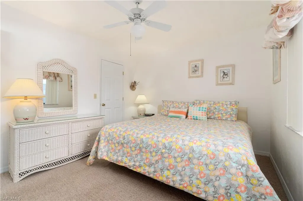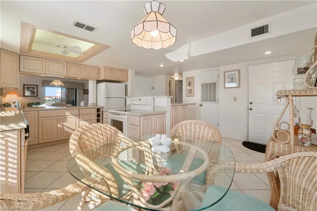 Charming END-UNIT in Casa Marina offers breathtaking Bay and partial Gulf views, nestled on the peaceful South End of Estero Island! This unit is a part of Estero Bay Improvement Association (EBIA) offering private beach parking/access, pickleball, bocce & tennis courts, walking/biking paths and a putting & chipping green. Perfectly situated less than a mile from Fishtale Marina, where you can store your boat with ease, and the Freedom Boat Club, offering hassle-free boat rental memberships, this location caters to all your maritime desires. Additionally, Casa Marina offers the opportunity to own or lease a boat slip for even more convenience. With deeded beach access just a short stroll away, this is truly a paradise for both beach lovers and boating enthusiasts alike. This meticulously maintained coastal retreat is finely appointed with 2 bedrooms, 2 bathrooms, an open floor plan, newer electric hurricane shutters, and a brand-new roof on the building (2024)! Relax on your west-facing lanais, complete with new screens, and take in the stunning sunsets over the Gulf of Mexico or watch manatees and dolphins glide through the bay. The kitchen has been redesigned to create an open concept with light cabinetry and countertops, ample storage space, an eat-in area, and a breakfast bar for casual dining. The spacious primary bedroom has a private lanai for ultimate privacy, along with a spacious walk-in closet. Casa Marina allows for monthly rentals, providing excellent potential for rental income! This unit includes a rare, covered parking space. Casa Marina is the ideal spot for beach and boating enthusiasts, located just steps from Fort Myers Beach’s pristine sugar sands. Residents can also enjoy various amenities including a community pool, deeded beach access, fishing pier, and access to the Bay Beach Commons, which features pickleball, tennis, bocce courts, as well as putting and chipping greens and walking scenic walking paths.