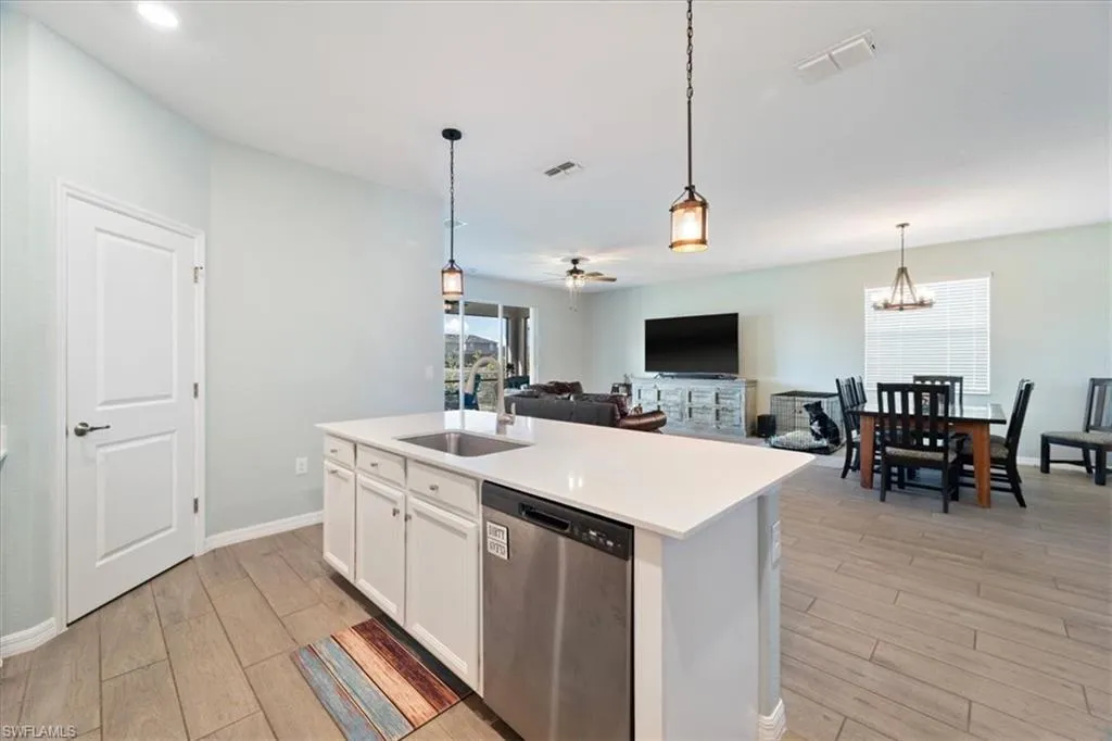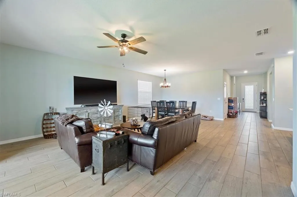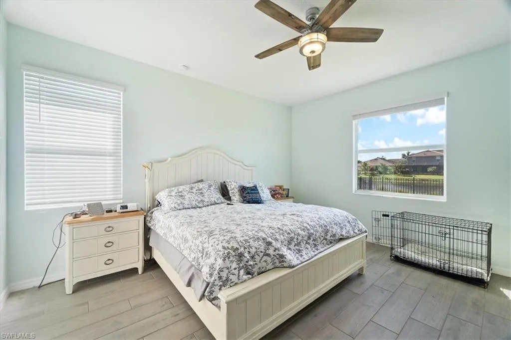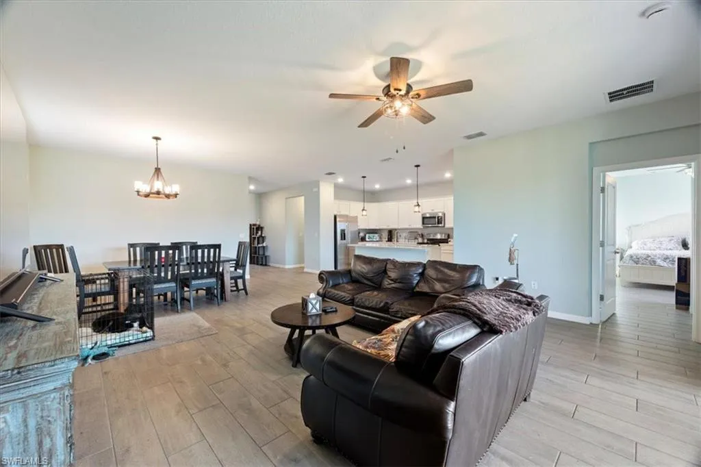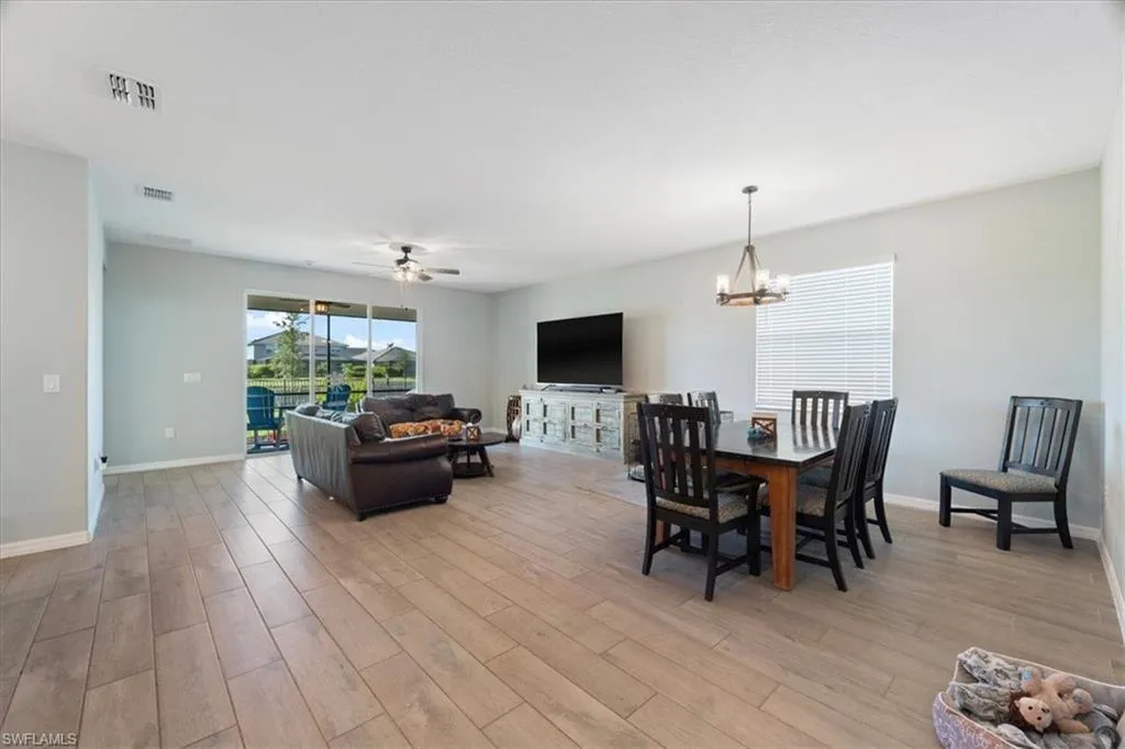 This beautiful home recently built in 2023, boasts four bedrooms, three bathrooms and is finished with upgrades galore! The entire home is complete with wood tile flooring. The kitchen features stainless steel appliances, an island with breakfast bar, and white cabinets. This split bedroom floor plan provides complete privacy for the owner’s suite. Outside, the lanai overlooks the fully fenced backyard (perfect for pets) with southern exposure and a water view. Other upgrades include: epoxy floor in garage, ev charger ready in garage, generator/rv plug in garage, and storage in attic completed with flooring, providing ample storage. Orange Blossom Ranch is a gated community with all the amenities to enjoy Florida living. Starting with low HOA fees the list continues with: resort style pools, bocce ball, pickleball, tennis courts, a fitness center, playgrounds, basketball court, sand volleyball court, fishing pier, and community center. Located just minutes from schools, parks, shopping, and dining, this home has it all!