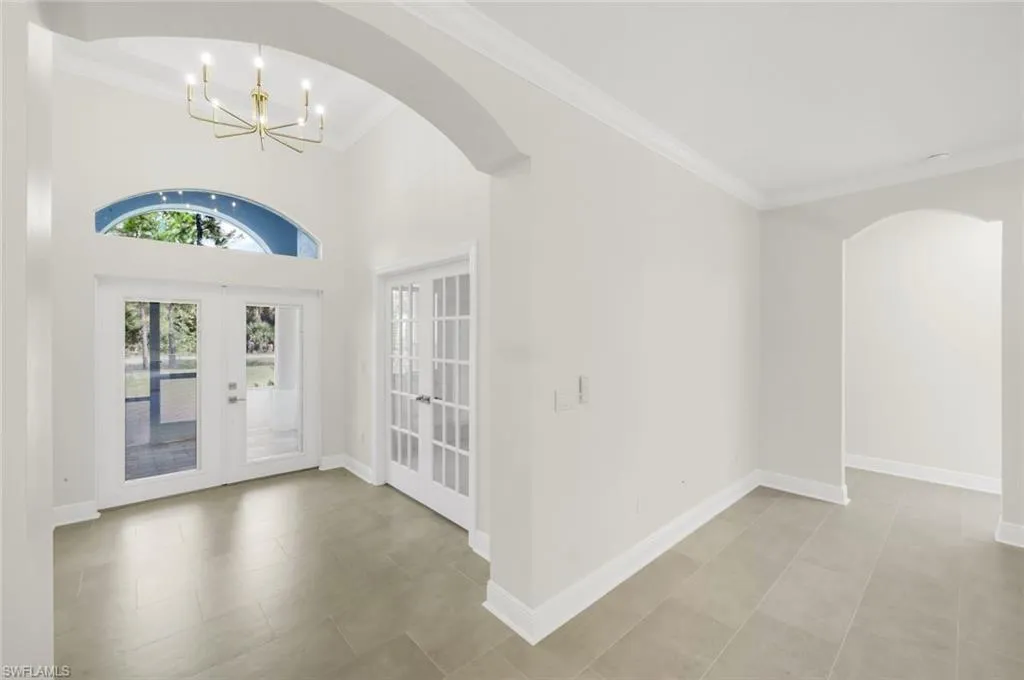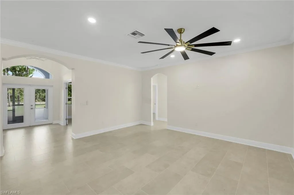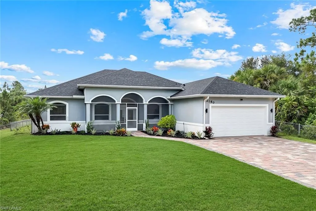 Welcome to this beautifully remodeled 3 Bedroom +Den, 3 Full Bathroom pool home with 2,486 sqft under air, which sits on a CLEARED 1-ACRE lot and did not only receive a full cosmetic upgrade but also had all major systems replaced in the last 2 years: NEW ROOF (2023), NEW A/C (2023), and a NEW WATER HEATER (2025). The open concept split-bedroom floor plan features a formal dining room, crown moulding, tray ceilings, elegant wainscoting, and a 13′ entry ceiling. The master suite offers an oversized bedroom, his and hers closets, a soaker tub, and a large walk-in shower. The home has been fully updated with NEW TILE FLOORING THROUGHOUT, NEW REMODELED BATHROOMS, NEW COUNTERTOPS, NEW ELECTRICAL AND PLUMBING FIXTURES, NEW PAINT inside and out, NEW LANDSCAPING and NEW KITCHEN BACKSPLASH. To round it off the home features stainless steel appliances, window treatments, included washer and dryer and an epoxy garage floor. Outdoor living shines with 2,000+ SQFT OF SCREENED OUTDOOR SPACE increasing your total livable and usable space to a whopping 4,500+ SQFT including a HEATED SALTWATER POOL, SPA, CAGE, COVERED ROOF AREAS, and a screened-in front porch for morning coffees during cool winter months. The property also includes a 750+ SQFT WORKSHOP on slab, perfect for storage, workshop, man cave, or even conversion to an ADU, guest house or in-law suite. Additional features include a WHOLE HOUSE RO SYSTEM, TWO CARPORTS ideal for cars, boats, RVs, or trailers, a large PAVER DRIVEWAY, and FULL FENCE INCLUDING A PRIVATE GATE. The location is unbeatable—west of Everglades Blvd, south of Randall, and just around the corner from the new Vanderbilt Beach Road extension (Estimated Completion Spring 2026)—all with NO FLOODING OR WATER POOLING issues during storms. This home delivers the perfect blend of modern updates, functional space, and prime Naples acreage, without sacrificing location.