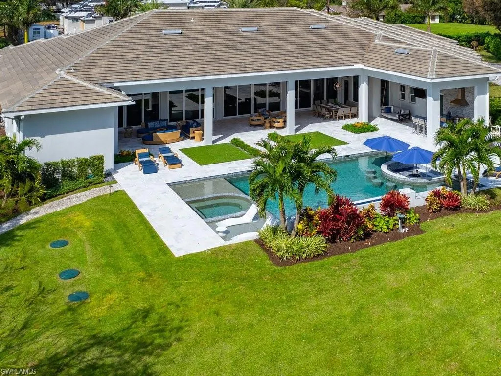 Reintroducing 830 Cassena Road – A Coastal Contemporary Masterpiece, where timeless design meets modern luxury. Situated on just over an acre of beautifully manicured land, this stunning ranch-style residence offers more than a home, it’s a lifestyle. Built in 2021, this coastal contemporary retreat boasts sweeping lake views and a beach-inspired ambiance that radiates relaxation and refined elegance. An open floor plan drenched in natural light creates a seamless connection between indoor and outdoor living, ideal for both quiet moments and hosting family and friends. Thoughtfully crafted for those who value both style and quality, the home features porcelain countertops in the indoor and outdoor kitchens, Thermador appliances, and high-end finishes throughout. With 5 spacious bedrooms and 8 thoughtfully designed bathrooms, this home provides exceptional comfort and flexibility. The expansive primary suite is a true retreat, featuring dual bathrooms and two large walk-in closets, offering privacy and generous space for both partners. Step outside to the heart of this extraordinary property. The 1,664-square-foot lanai complete with a fire pit, outdoor bar and grill, and panoramic views of the serene lake, it’s an entertainer’s dream and a peaceful haven all in one. Perfectly positioned just minutes from Naples’ world-renowned beaches, the vibrant Mercato shopping district, and the upscale Waterside Shops, this home offers privacy and convenience in equal measure. Unfurnished and ready to be tailored to your taste, 830 Cassena Road invites you to bring your vision and make it your own.