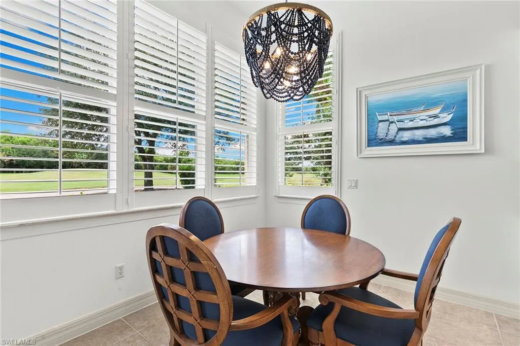 This beautifully designed first-floor coach home effortlessly blends luxury, comfort and breathtaking golf course views with stunning sunset vistas. Featuring a desirable western rear exposure, it offers spectacular views over the 12th hole of the North Course. The generous screened lanai provides a tranquil outdoor space for relaxation or an elegant venue for entertaining, while also expanding your living area. The home is exquisitely furnished and boasts high-end upgrades throughout, including custom cabinetry, stone countertops and designer finishes, enhancing the space with a timeless, sophisticated feel. Recent improvements include fresh paint and new carpeting, a new water heater, upgraded televisions, an epoxy-coated garage floor, plantation shutters and updated lighting. In one of Naples prestigious communities, residents enjoy world-class amenities, such as two Tom Fazio-designed golf courses, a private beach club, tennis and pickleball courts, bocce courts, a state-of-the-art fitness center with yoga studio, and several exceptional dining options. The newly completed Mediterra Beach Club offers an exclusive beach club on the white sands of the Gulf. Featuring a restaurant and bar that serves members via indoor and outdoor dining, a heated swimming pool, a sundeck and beach service for chairs, umbrellas and refreshments. Mediterra has a lifestyle for enviable Naples living.
