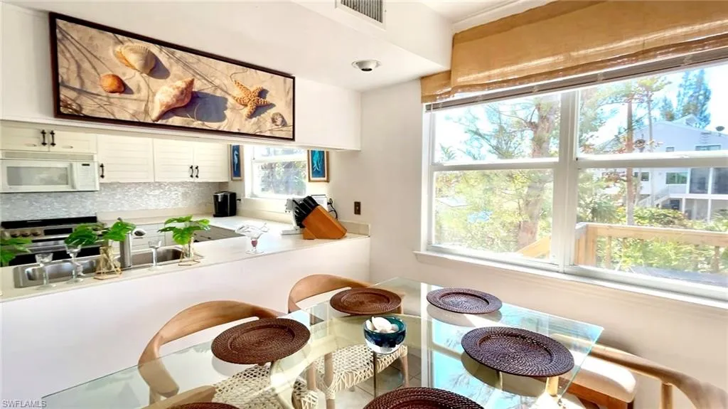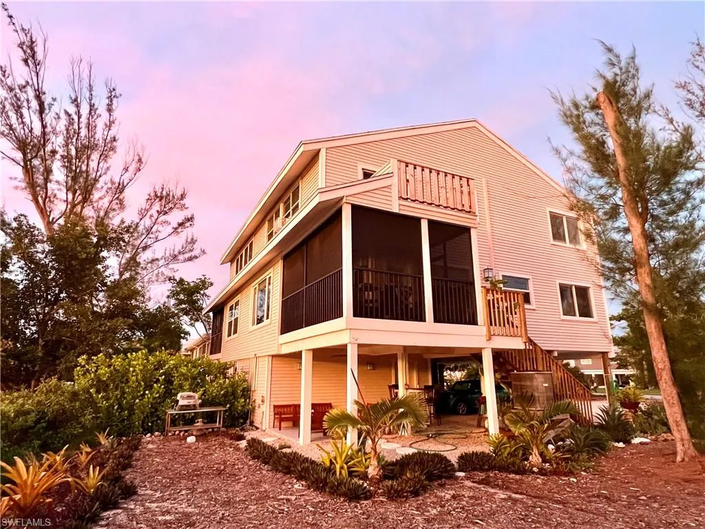 Ideally located across from Sanibel’s white sand beach and overlooking the Sanibel Golf Club, this move-in ready duplex offers a rare opportunity for a vacation home or a turnkey investment property. The home features three bedrooms, three full baths, open living and dining areas, and a well-appointed kitchen. Outdoor living includes a ground-level patio, first-floor lanai deck, and private master sundeck on the top floor. The first-floor bedroom and full bath provide flexible guest accommodations. There is ample covered parking (boat-friendly) and storage (or art studio!) space. The Sea Pines HOA is pet-friendly, consists of just five owners, and includes access to the pool that is just steps away. Fully furnished and ready to suit your best lifestyle.