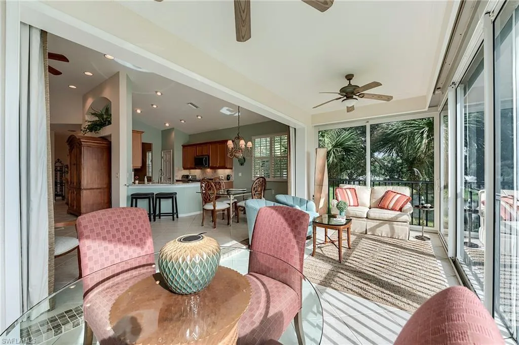 Best view in Shadow Wood over lake and all down the 5th hole! Located in desirable Paletto Ridge section within a short walk to the community pool. This beautiful second-floor carriage home offers a spacious open floor plan with ample Living Space including Huge Living Room, Sunroom, eat in Kitchen, Dining Room AND Great Room. The kitchen features Breakfast Bar, Pantry and loads of storage! Rounding out the home is The primary suite offering a private retreat with walk in closet, Dual Vanity, Separate tub and Shower, and direct access to the Sunroom. Additional features include a one-car attached garage, and neutral décor that complements any style. Experience luxurious, maintenance-free living in the popular community of Palmetto Ridge at Shadow Wood in The Brooks. Residents of Palmetto Ridge enjoy a private community pool and spa, along with access to The Brooks’ exclusive amenities, including optional memberships to Shadow Wood Country Club (featuring 54 holes of championship golf, tennis, bocce, and fine dining) and The Commons Club, offering a state-of-the-art fitness center, social events, and private beach access on the Gulf. Located just minutes from Coconut Point Mall, Miromar Outlets, fine dining, and Southwest Florida International Airport, this home offers the perfect balance of luxury and convenience.