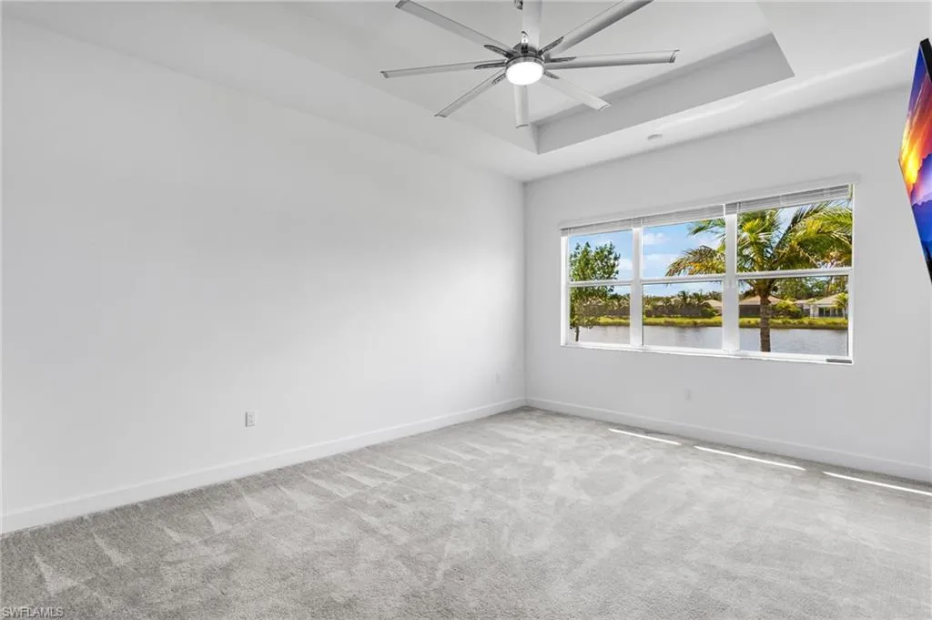 Retreat to the expansive primary suite, boasting tray ceilings, two generous closets, dual vanities plus a built-in makeup station, a walk-in shower with bench and dual showerheads, a private water closet, and a spacious linen closet — luxury and practicality combined. The oversized lanai is yours for outdoor entertaining, pre-wired for TV and pre-plumbed for natural gas, ideal for grilling or a future summer kitchen, all while enjoying stunning west-facing lake sunsets; there’s even ample room to add a pool. Impact glass protects every door and window for peace of mind and lock-and-leave ease.