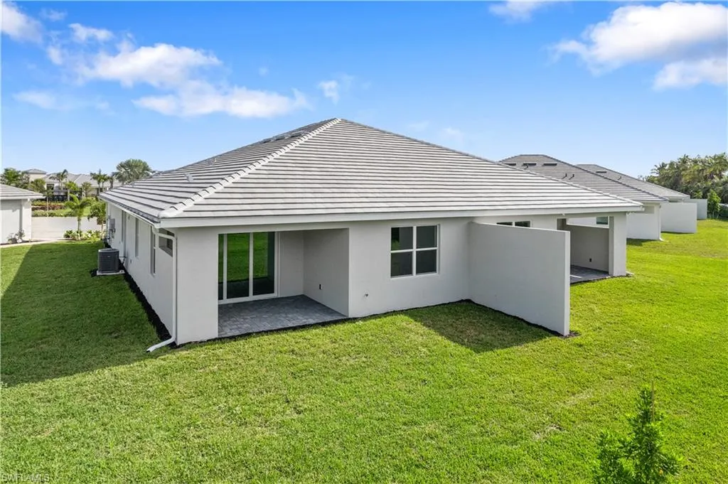 Live the Florida lifestyle in this stunning new construction Meranti floor plan, offering 3 bedrooms, 2 bathrooms, and a beautifully open-concept layout perfect for everyday comfort and entertaining. Located in desirable South Naples, just minutes from the upscale dining and shopping of Fifth Avenue, the white-sand gulf beaches, and the island charm of Marco Island, this home offers the best of coastal living. Set on an oversized pie-shaped lot with lush landscaping and elegant palms, The home features a covered lanai with southwest exposure—ideal for Florida sunsets and plenty of space for a pool and spa after closing. Inside, the gourmet kitchen is a true showpiece, featuring gleaming quartz countertops, wood cabinetry, a suite of high-end stainless steel appliances, and a natural gas cooktop—perfect for creating everything from casual breakfasts to elegant dinner parties in style. The great room and casual dining flow seamlessly, creating a welcoming space for gatherings. The private primary suite is a serene retreat, featuring a spa-inspired bathroom with elegant dual vanities, a spacious walk-in shower with designer finishes, and an expansive walk-in closet designed for both style and function—your own personal sanctuary at the end of each day. The thoughtfully designed laundry room adds convenience with a deep utility sink, built-in shelving, and plenty of extra storage to keep everything organized and out of sight. Additional highlights include all-season peace of mind with impact glass windows and doors, the reassurance of a comprehensive builder warranty and adherence to the highest builder standards, and exclusive access to a gated community offering resort-style amenities—including a sparkling pool, elegant clubhouse, state-of-the-art fitness center, and a full calendar of thoughtfully curated events and activities led by a dedicated lifestyle director. Ask about current builder incentives and rate buydown opportunities. Floor plan and design selections available in MLS documents. Lot 17.