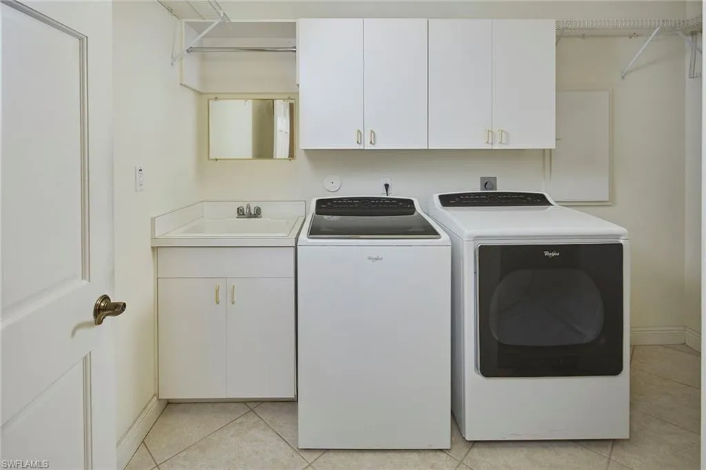 This spacious 2 bedroom 2 bath 1st floor residence is located conveniently within walking distance to the club house, community pool and entertaining area. Featuring an open living concept with 10’ ceilings, a 14’ x 32’ Great Room and split bedroom floor plan to ensure privacy. Sliding glass doors 9’ wide open onto the 11’ x 30’ screened lanai with outdoor kitchen and very private, wooded and tropical landscaped setting with a bubbling rock waterfall. The kitchen has many sunny windows in the eating area and offers under-cabinet lighting, custom pull-outs, pantry and breakfast bar. Primary bedroom has a tray ceiling, French doors opening to the lanai, bath area featuring large walk-in closet with wood shelving, double vanities, walk-in shower, jetted tub and separate water closet area. Laundry room has full-size washer and dryer, cabinets, shelving and laundry tub. A/C and water heater were replaced in 09/2025. Electric shutters plus a detached one-car garage. This amenity rich development offers tennis, bocci ball, putting green, shuffleboard, club house with kitchen and one of the largest outdoor swimming pools in SW Florida (11,000 sf) with waterfall. Located just minutes from shopping, restaurants, medical facilities, the 5h Ave South/3rd Street district and the beautiful Gulf beaches.