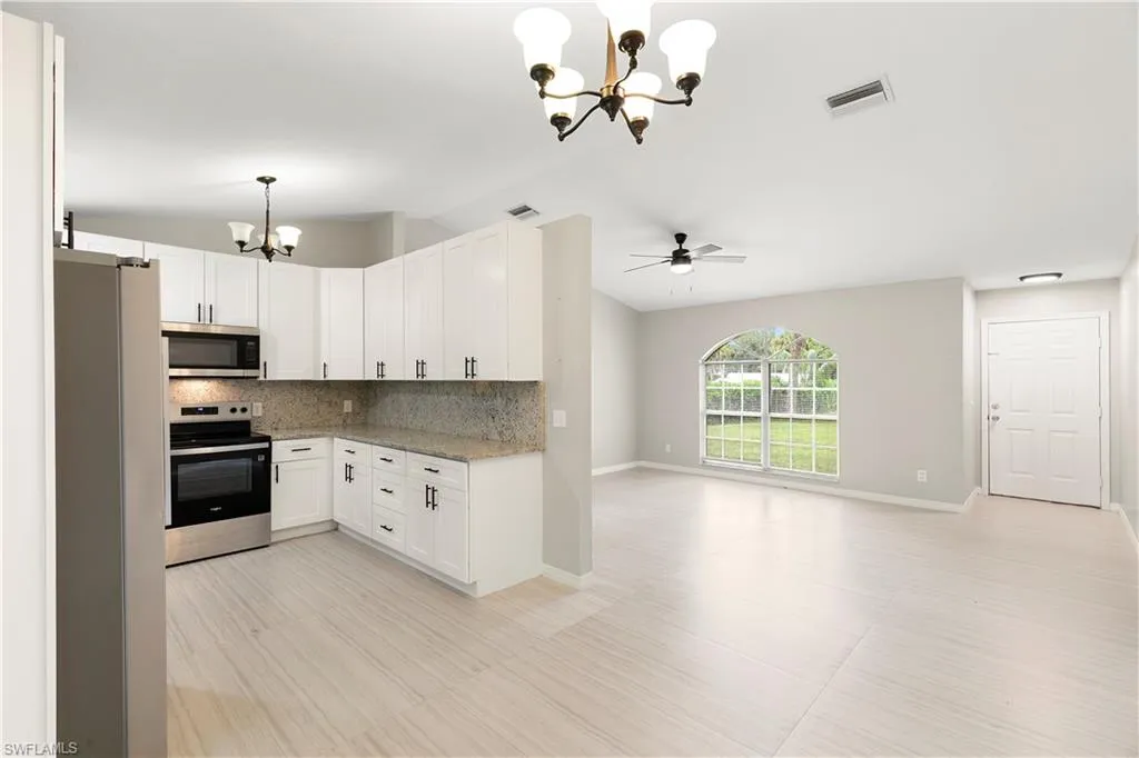 Remodeled home, In the heart of Golden Gate Estates, one of the most sought-after areas in Southwest Florida. Known for its peaceful atmosphere, spacious lots, and freedom from HOA restrictions, this neighborhood offers the perfect blend of privacy and convenience. Just minutes from Golden Gate Blvd, you’ll have easy access to new shopping plazas, top-rated schools, parks, and local dining while still enjoying the tranquility of country-style living. The home itself has been beautifully remodeled with an open-concept layout, modern finishes, luxury vinyl flooring, and a bright, airy feel throughout. The kitchen is a true centerpiece, featuring quartz countertops, stainless steel appliances, and custom cabinetry, ideal for entertaining or family gatherings. The primary suite provides a relaxing retreat with a walk-in closet and upgraded bathroom, while the oversized yard gives you endless opportunities for a pool, garden, or outdoor living area. With plenty of space for your boat, RV, or extra vehicles, this home offers the best of both worlds a peaceful, spacious setting just a short drive from downtown Naples, the beaches, and all the charm of Southwest Florida living.