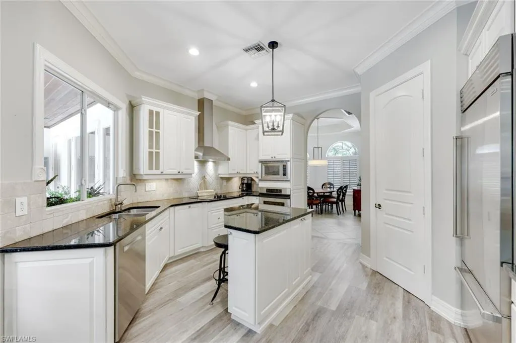 Discover your dream home in beautiful Naples, where a luxurious lifestyle awaits. Located within the vibrant community, Wilshire Lakes, this exquisite three bedroom+den, two and a half bath residence offers the ultimate in outdoor living with a converted saltwater heated pool and spa, complemented by a large outdoor kitchen outfitted with a built-in grill and refrigerator, all sheltered within a screened-in double-tiered lanai. The heart of the home boasts a Sub-Zero refrigerator, top-of-the-line kitchen appliances and granite kitchen countertops. Choose to relax casually in the spacious family room or formally entertain in the living room with french doors that invite you to the remarkable pool deck. Retreat to the en-suite primary bedroom that features a soaking tub and separate shower, dual vanities and a walk-in closet. The guest suites with their walk-in closets offer plenty of room for family or guests. No expense spared with crown molding throughout the home. Residents enjoy exclusive access to tennis courts, two fabulous clubhouses, sparkling swimming pools, and a rejuvenating spa, all guarded by a top-notch security entrance. Perfectly situated just 5 miles from one of Naples’ pristine beaches and a mere 2 miles from shopping and dining, this home ensures everything you need is within arm’s reach. This is more than a home—it’s a lifestyle you’ve been dreaming of!