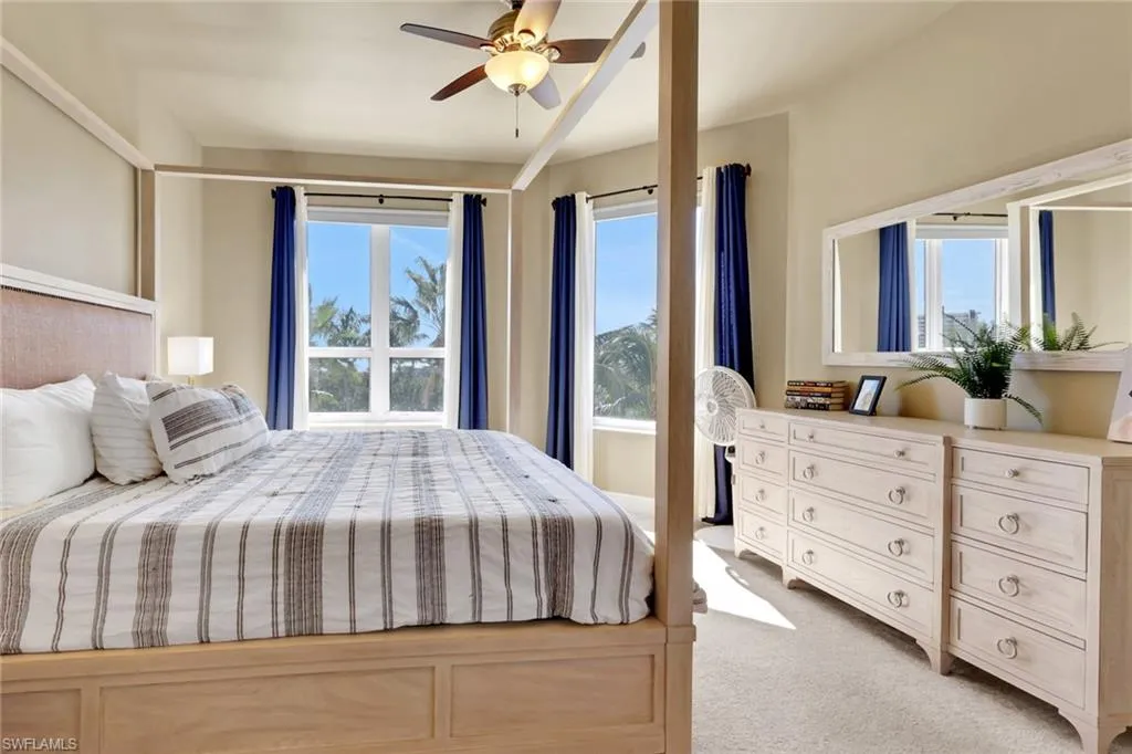 Discover the pinnacle of coastal living in Waterside, a prestigious gated community at the southern tip of Estero Island. This exceptional 3-bedroom, 2-bathroom condo offers the perfect blend of luxury, comfort, and unmatched scenery—with sweeping views of both the Gulf of Mexico and the serene Bay. Step into your semi-private elevator and ascend to a residence designed to impress. Inside, high-end upgrades abound—from the spacious, chef-inspired kitchen to the expansive open floor plan that effortlessly blends functionality with elegance. Sunlight pours through large windows, illuminating every corner and framing the stunning natural beauty just outside. Enjoy peace of mind with impact-resistant windows and electric hurricane shutters on the balcony—your safety and comfort are paramount. The expansive balcony is your front-row seat to breathtaking sunsets over the Gulf—an ideal setting to unwind with a drink or entertain guests in style. Whether you’re hosting family and friends or enjoying quiet evenings at home, this condo offers the perfect balance of vibrant island life and tranquil retreat. Plus, with shopping, dining, and nightlife just minutes away, you’re never far from everything you need. Don’t miss your chance to own a piece of paradise—experience the elegance, serenity, and lifestyle that only Waterside can offer. Schedule your private tour today!