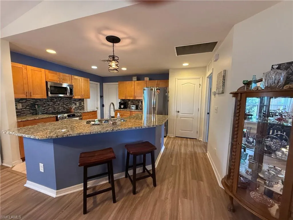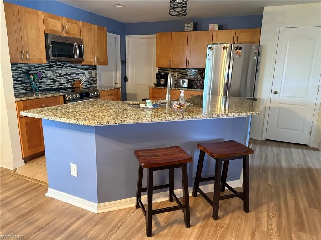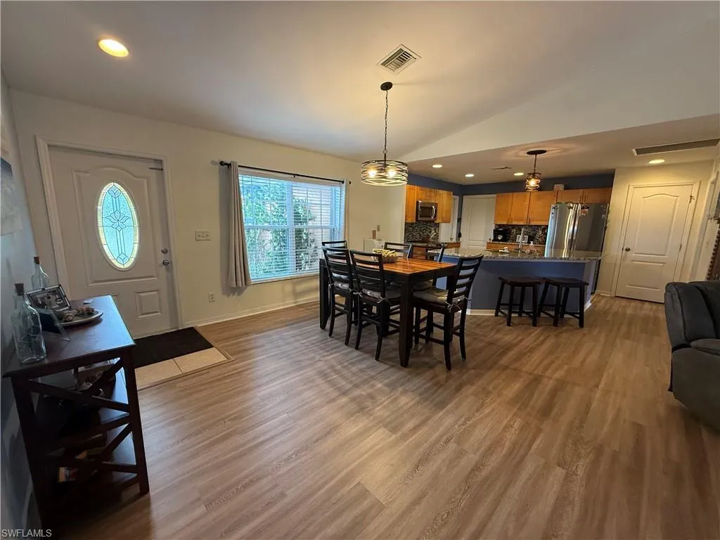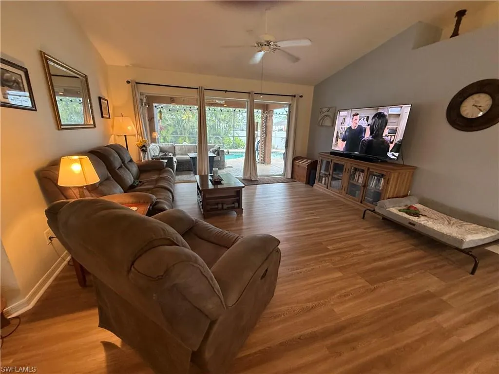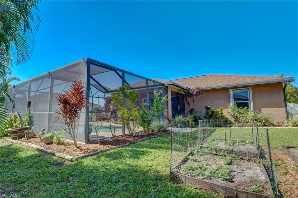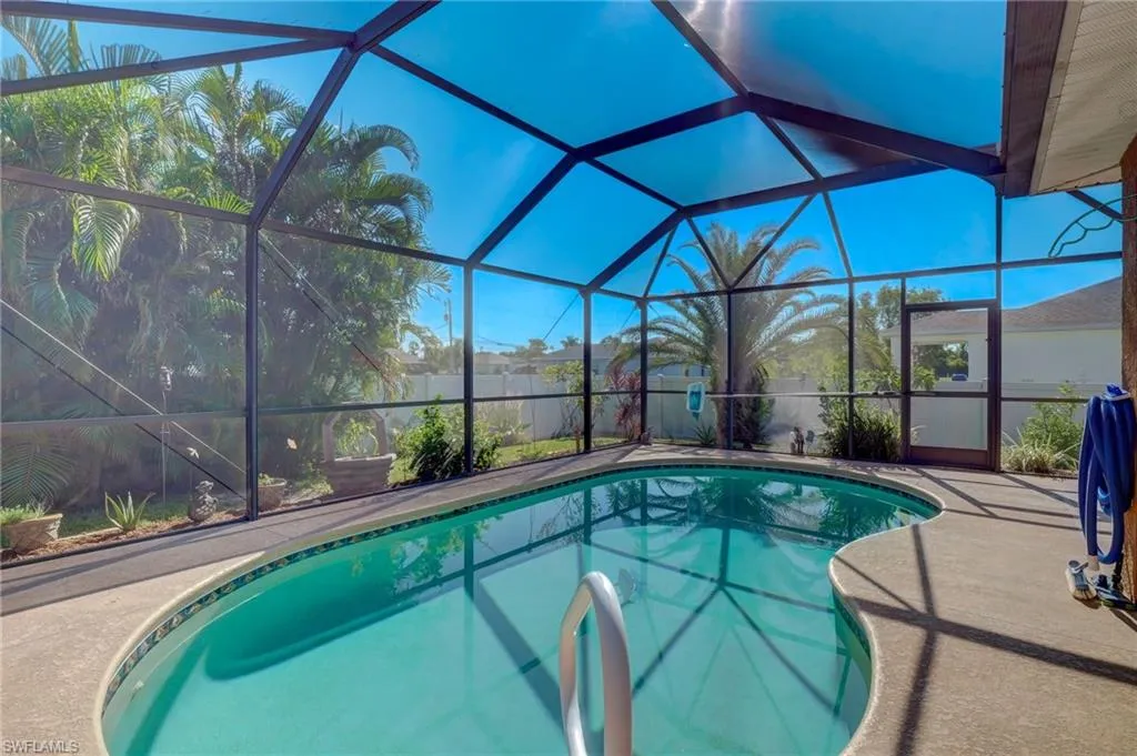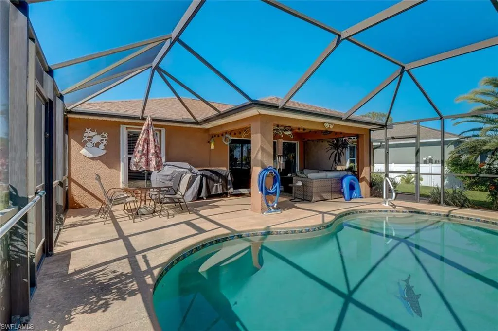 Welcome home to this beautifully maintained 3-bedroom, 2-bath pool home in one of Cape Coral’s most convenient locations! Step inside and you’ll immediately notice the bright, open layout featuring wood-look plank flooring, an updated kitchen with granite countertops, stainless steel appliances, and rich wood cabinetry. The large breakfast bar is perfect for entertaining, while the spacious great room flows seamlessly to the screened lanai and pool.