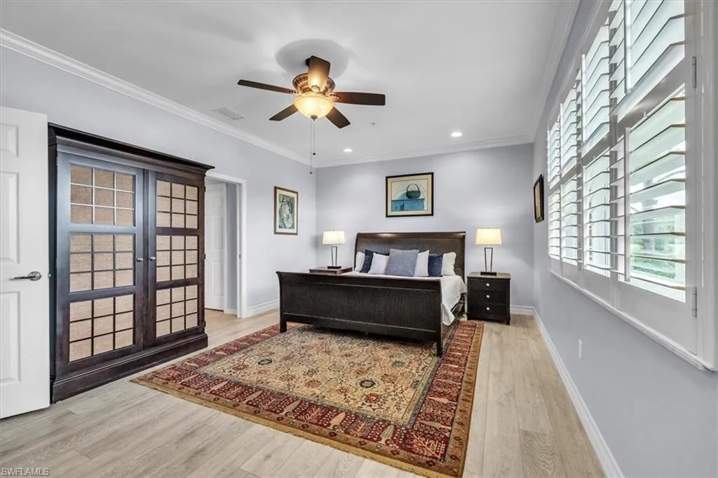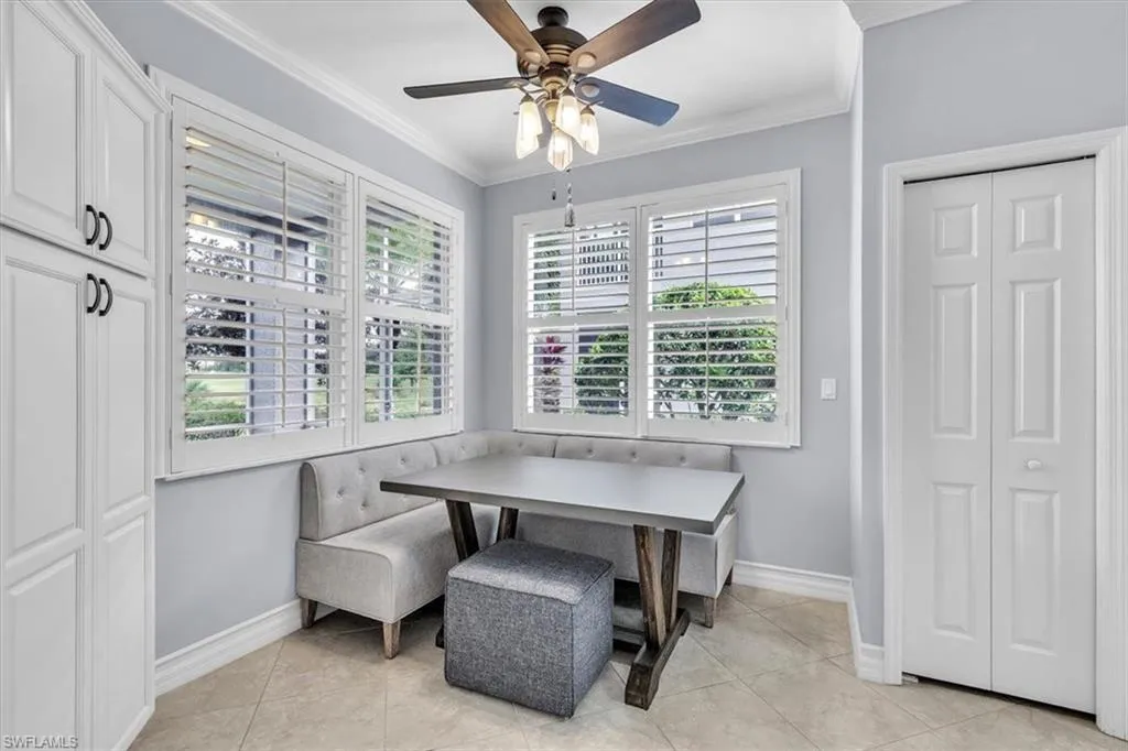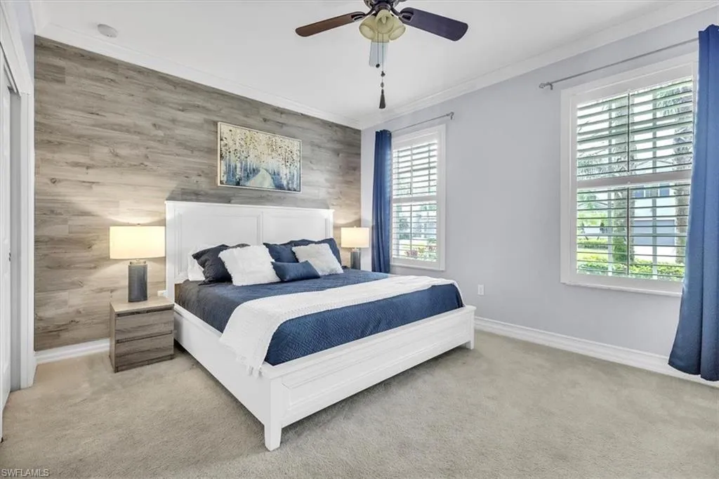Retreat to the spacious primary suite with luxury vinyl plank or unwind in bedroom #2, where a coastal accent wall creates a focal point of modern flair against the serene backdrop of your daily vistas. Crown molding adorns the ceilings throughout, elevating every room with refined architectural detail and a sense of understated luxury. With an attached one-car garage, ample storage, and partially furnished for immediate enjoyment, this low-maintenance gem is designed for effortless Florida living.