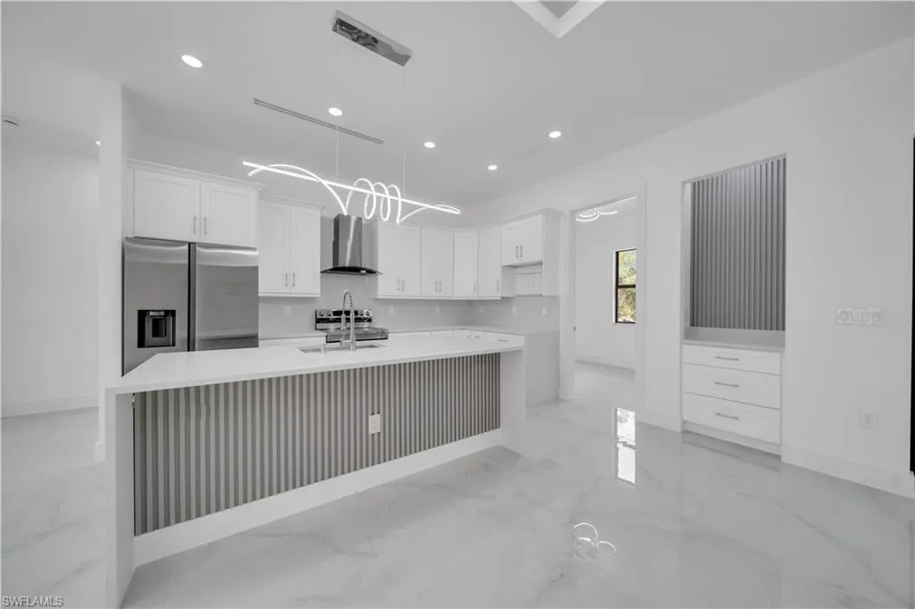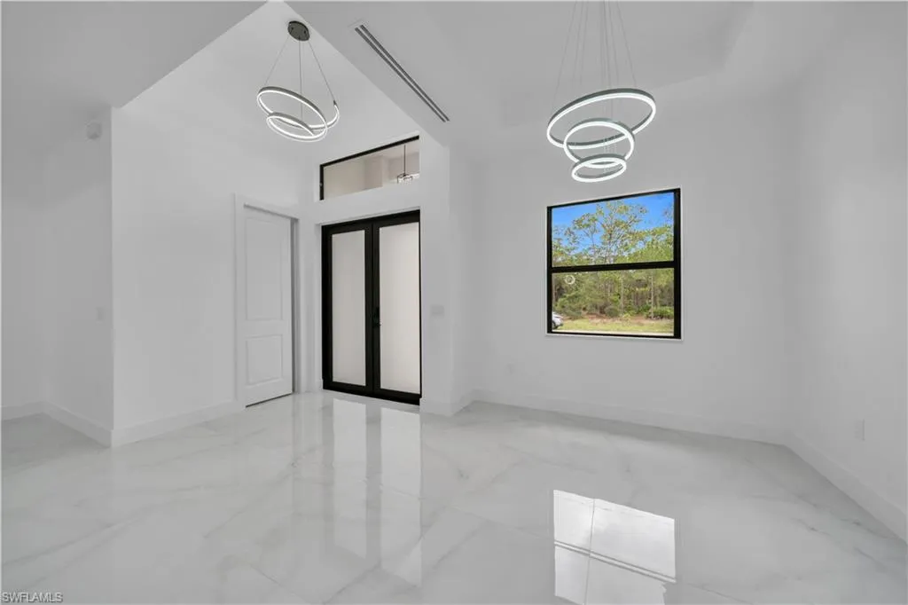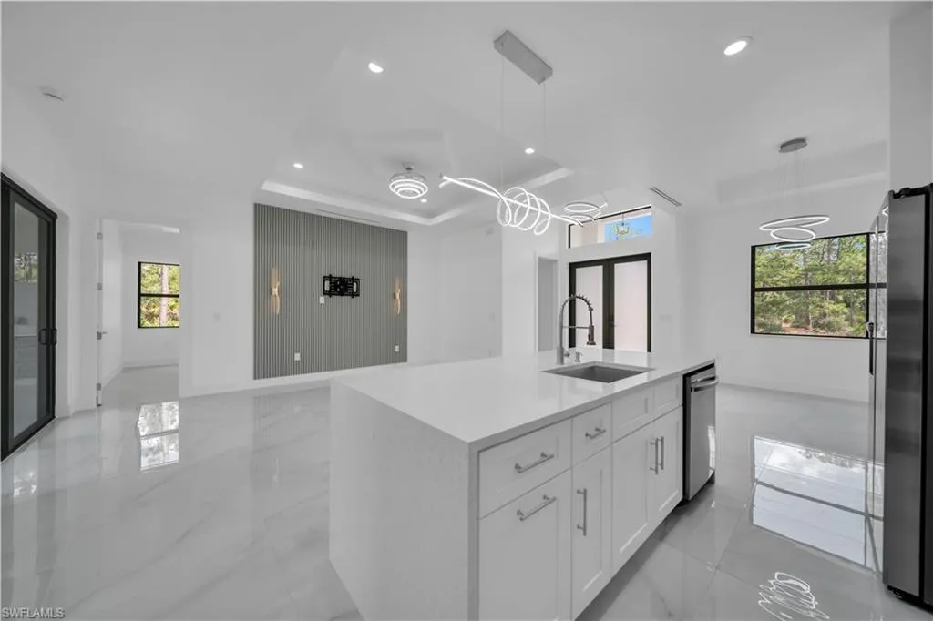Welcome to this stunning home sitting on a spacious ½-acre lot in Lehigh Acres. This residence features 3 bedrooms + den, 2.5 bathrooms, and a 2-car garage with plenty of room for your lifestyle needs. Inside, you’ll love the sleek white porcelain floors, open layout, and abundant natural light. The master suite offers a spa-like retreat with a large standing shower, double sinks, and his & her walk-in closets.