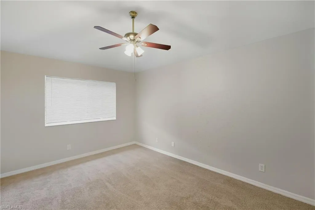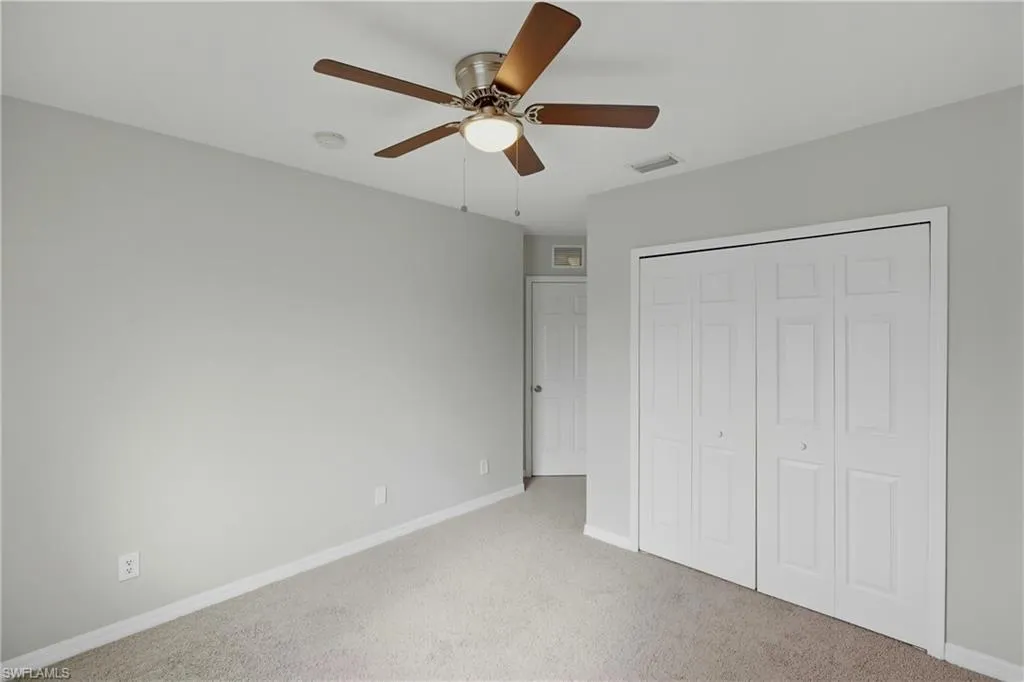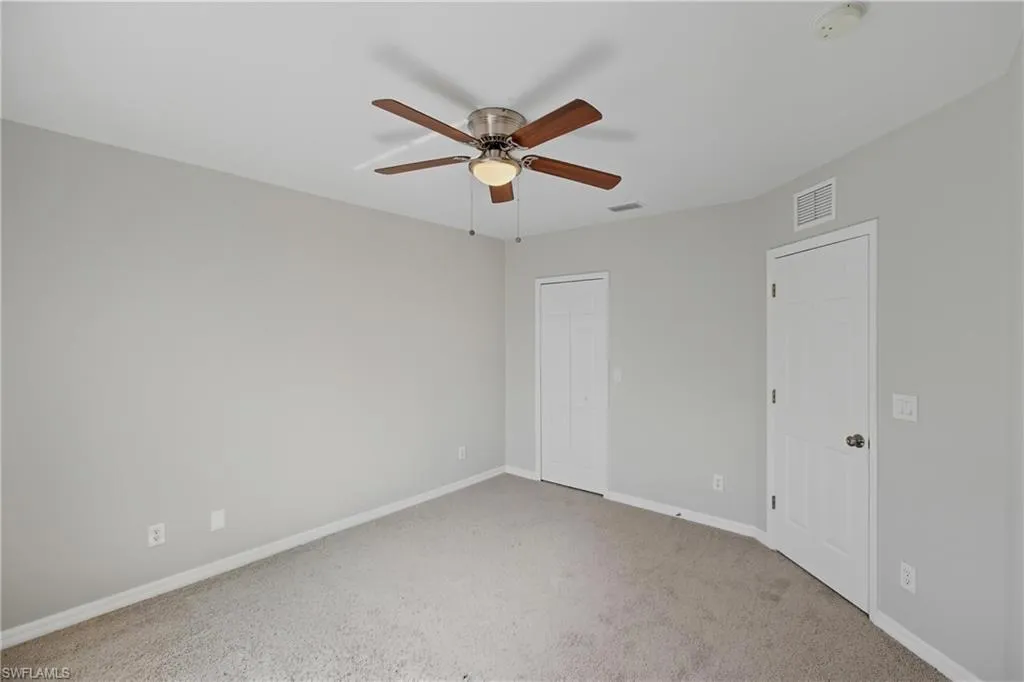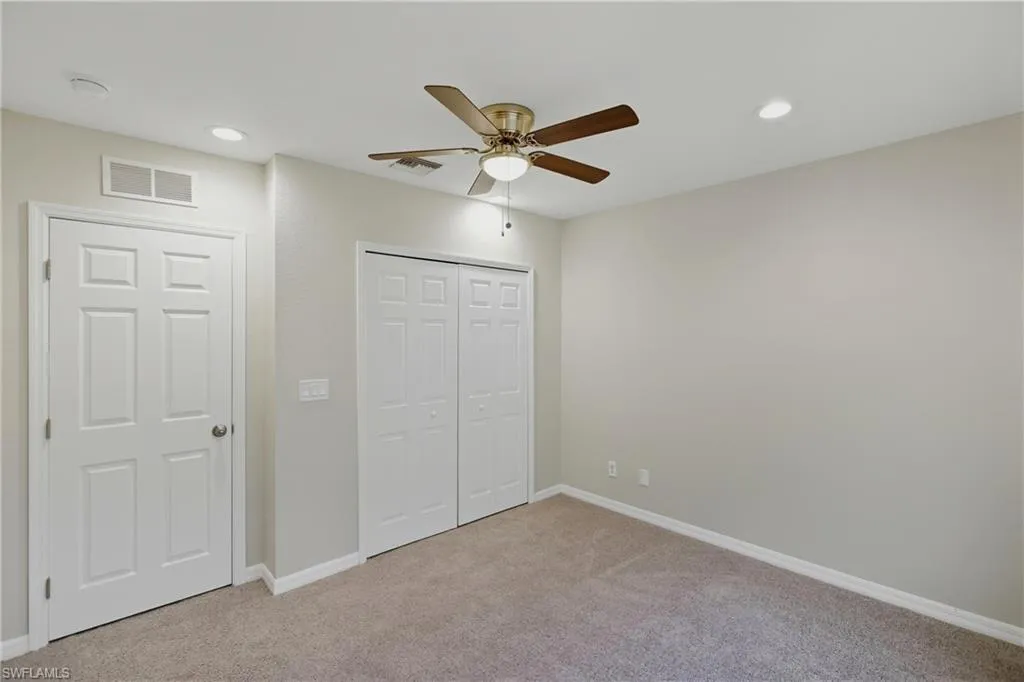 This spacious 4-bedroom, 3-bathroom townhome in Timberwalk at Three Oaks offers 1,938 square feet of comfortable living space and one of the community’s largest floorplans, complete with a valuable 2-car garage. Located in San Carlos Park near Fort Myers, Florida, this move-in ready home combines convenience, comfort, and value in one of Southwest Florida’s most desirable gated communities. The freshly painted interior features a welcoming foyer entry, a tiled main level, and a thoughtfully designed layout. The eat-in kitchen includes white cabinetry, stainless steel appliances, granite countertops, and a pantry, while a formal dining area opens to a spacious living room and private screened patio—perfect for relaxing or entertaining. A powder bath for guests and a dedicated laundry room add convenience on the first floor. Upstairs, you’ll find four bedrooms, including a generous primary suite with vaulted ceilings, dual closets (one walk-in), and an ensuite bathroom featuring dual sinks, a makeup vanity, separate shower, and soaking tub. Three additional bedrooms share a full hallway bath with tiled floors, a large vanity, and a tub/shower combination with glass sliding doors. The upstairs level is finished with plush neutral carpet throughout, creating a warm and cohesive feel. Major updates include a 2020 HVAC system and 2023 hot water heater for added peace of mind.
