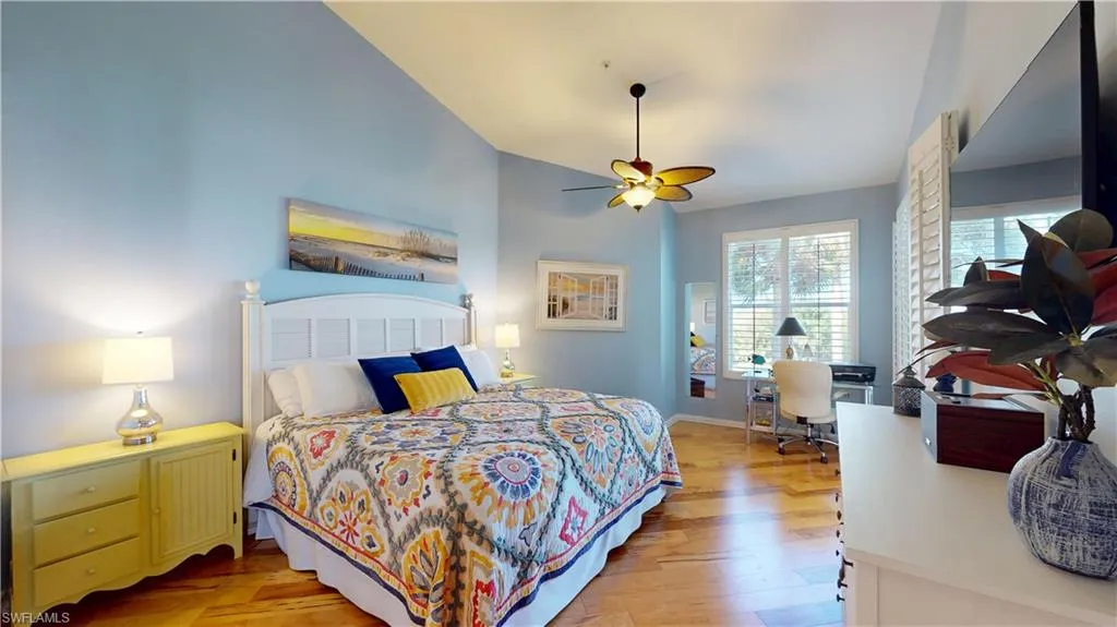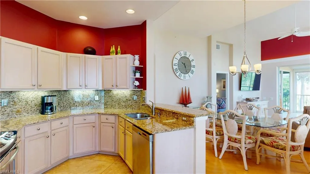 This beautifully maintained and fully furnished/turnkey top floor 2 bedroom 2 bath “Sheffield” condo is PRICED TO SELL! It is located in the Lexington Country Club’s Golf Village (bundled golf) just minutes from Sanibel and Ft Myers Beach. This tastefully appointed end unit condo is the largest of the condos and backs to hole 14. Enjoy the screened lanai with acrylic sliders overlooking the beautiful view of the preserves and the fairway and pond. It is so private! The condo has high ceilings and is flooded with natural light. All windows have plantation shutters and hurricane shutters. The kitchen has been updated with new countertops and undercounter lighting. Primary bathroom has a frameless shower enclosure and new mirrors and lighting. Living room, dining room, and 2 bedrooms have light hardwood floors. A designated covered parking spot is just outside the entry.
