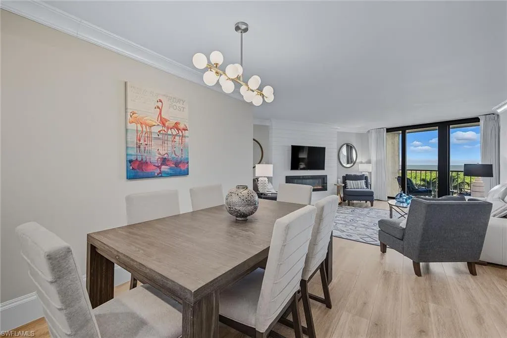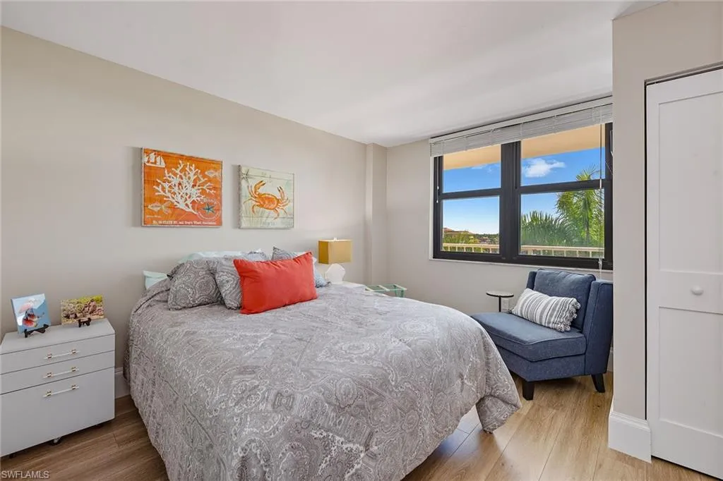 This beautifully furnished waterfront residence in the high-rise South Seas Condominium offers a rare opportunity to enjoy coastal living with Gulf access and sweeping water views. Designed to combine comfort with style, the home is perfectly positioned in one of Marco Island’s most sought-after communities, placing you moments from the beach and surrounded by luxury amenities, fine dining, and endless opportunities for recreation. Inside, the thoughtfully designed floor plan features two bedrooms and two bathrooms, with impact-resistant doors and windows for security and peace of mind. Recessed lighting highlights the interiors, while laminate flooring in the main living areas creates a warm, inviting atmosphere, and tile flooring in the bathrooms adds durability and function. The living room is enhanced with crown molding and opens through a glass slider to the balcony, where stunning views of the Gulf provide the perfect backdrop for morning coffee or evening sunsets. The kitchen is thoughtfully designed with white shaker-style cabinetry, a decorative tile backsplash, GE stainless steel appliances, and a bar counter with seating for casual dining or entertaining. A pantry provides excellent storage, ensuring both style and practicality. The primary suite serves as a private retreat, featuring its own balcony access and an ensuite bath with dual vanities and a walk-in shower with floor-to-ceiling tile walls. The guest bedroom is generously sized, with an adjacent bathroom showcasing another walk-in shower with matching tile detailing. As a resident of the coveted South Seas community, you’ll have exclusive access to a private beach, bike storage, community pool, tennis court, a state-of-the-art fitness center, and library. Beyond the residence, the community offers the ideal balance of coastal luxury and an active lifestyle. Just minutes away are Marco Island’s pristine beaches, boutique shopping, world-class golf, parks, and museums. Whether you prefer kayaking, paddleboarding, tennis, pickleball, biking, or even yoga on the beach, the possibilities are endless. With the convenience of the nearby executive airport, travel is effortless.