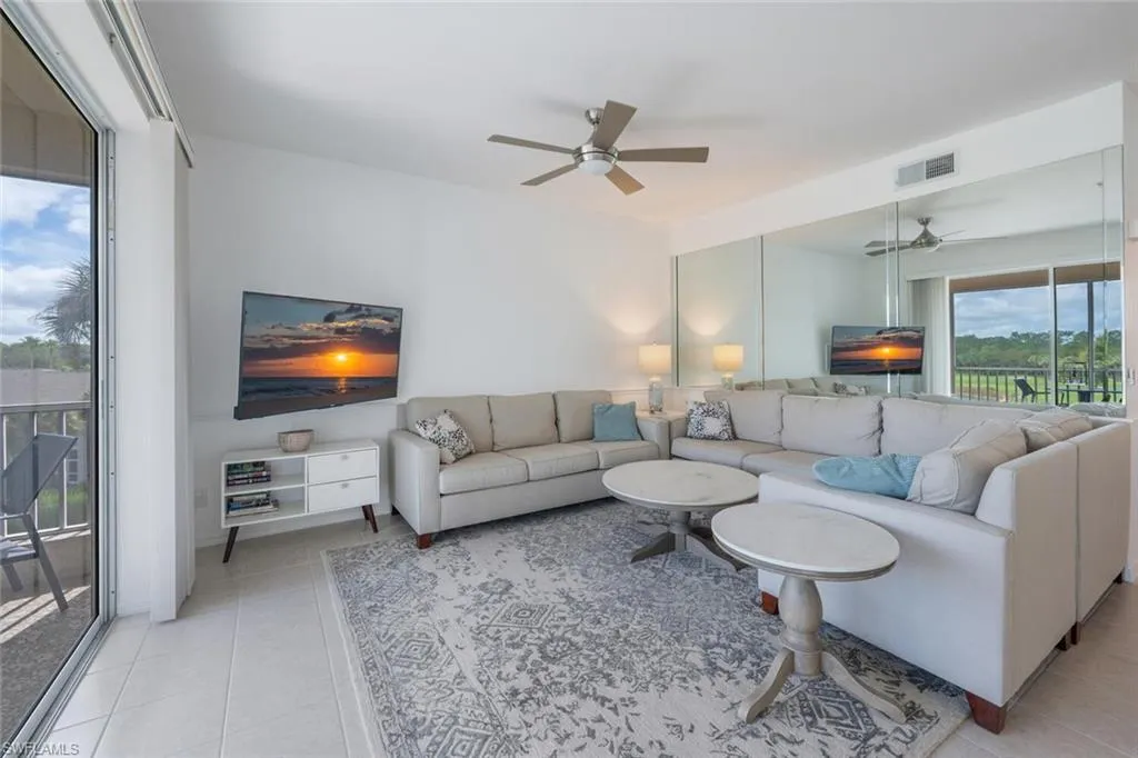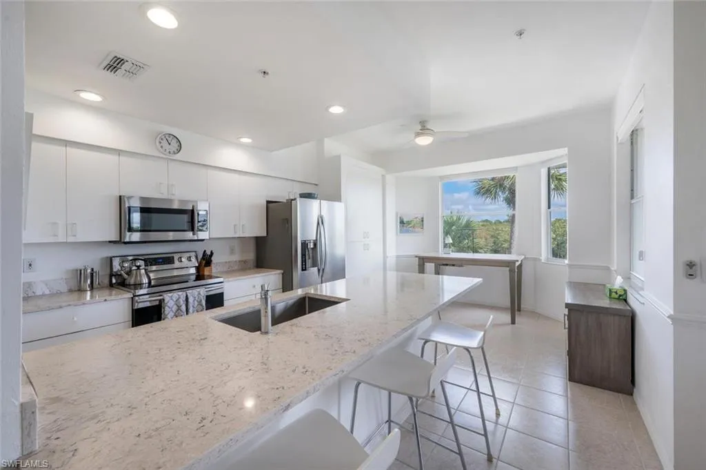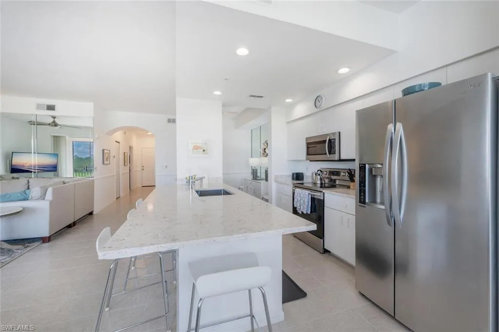 You have to see this one to believe it! Top floor end unit open concept Brookside model totally upgraded with a view of the signature par three twelfth hole. Totally upgraded for the discerning Buyers that want the best without the work and expense of remodeling it for themselves after purchase. Just move in and enjoy all this property has to offer. The appliances, air conditioning system, hot water tank have been upgraded. This one even offers a custom built pantry in the kitchen. Beautiful neutral decor quartz countertops in kitchen with deep sink. Renovated bathrooms with quartz countertops. All furnishings and decor designed to appeal to any Buyers! Fantastic Naples Heritage has it all championship golf, clubhouse with indoor and outdoor dining, resort style pool with dining, fitness center with classes and instructors, tennis complex, pickleball complex and card room with library. All of this and so close to Fifth Avenue and the beautiful Naples beaches . Let this home be your paradise!