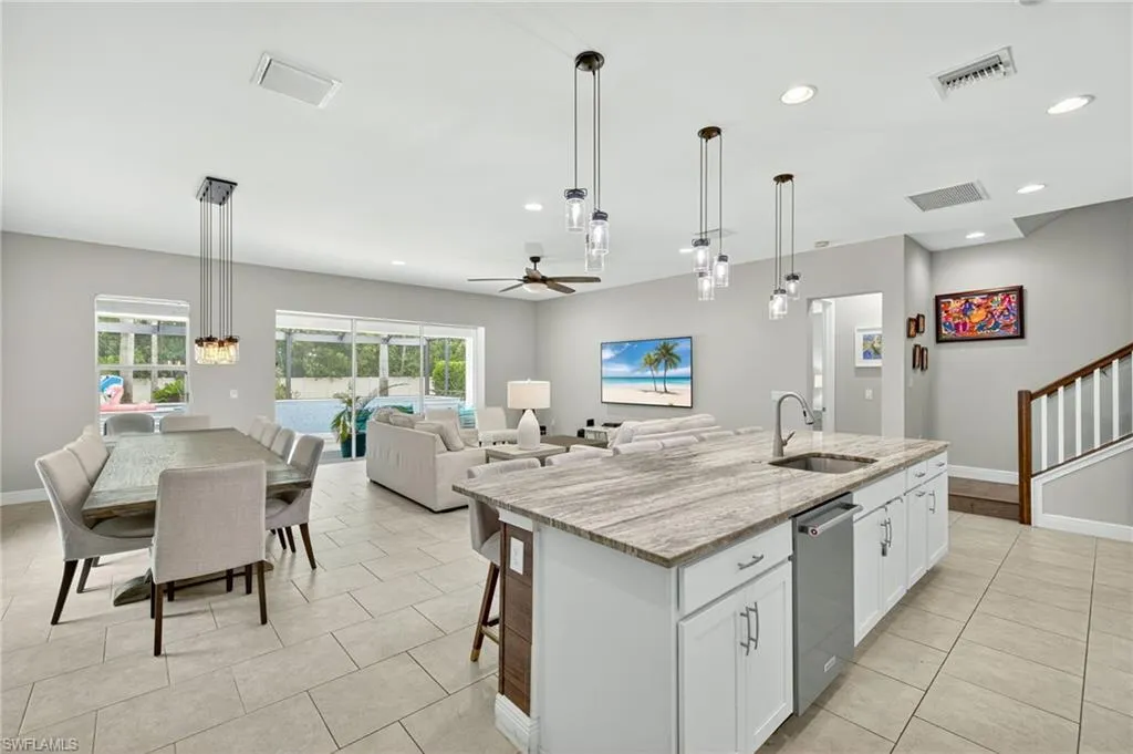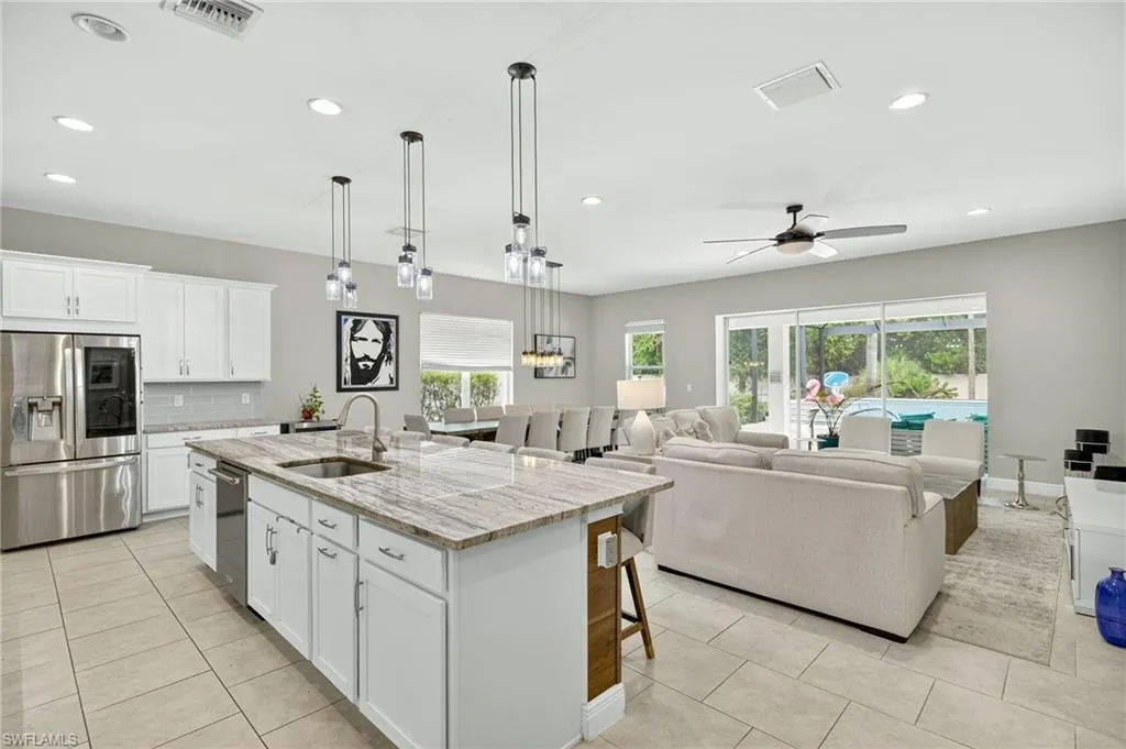 The open floor plan seamlessly connects living spaces, dining area and gourmet kitchen. Experience abundant natural light throughout this beautifully designed home.