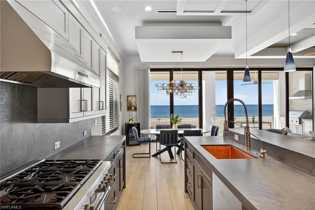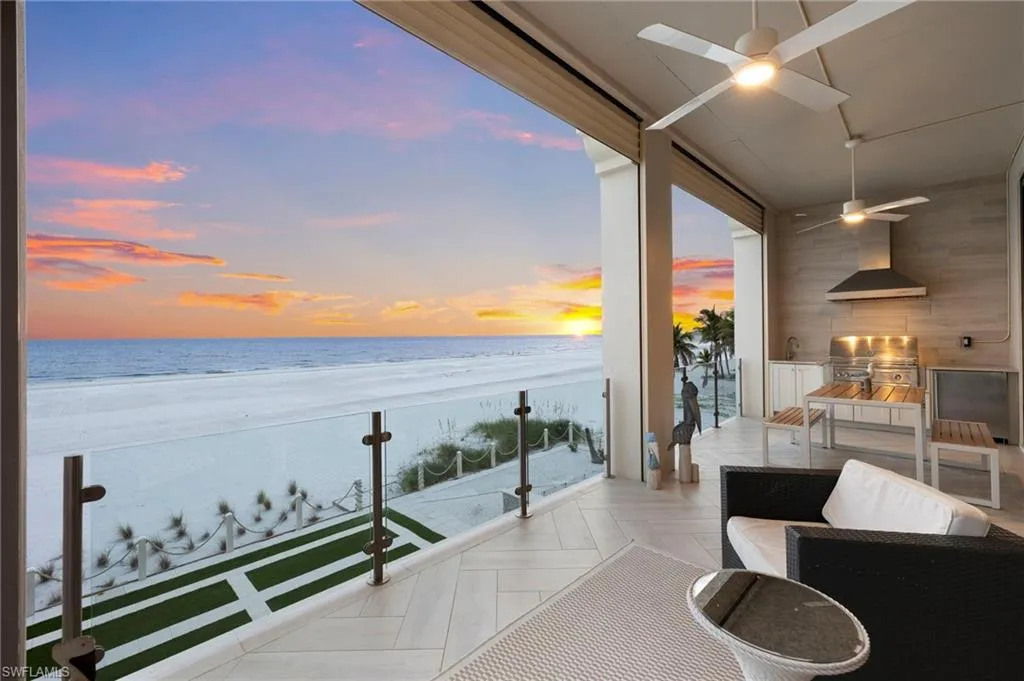 Situated on the most sought-after stretchers of Ft Myers Beach, this Gulf-front residence delivers luxury beachfront living with a strong investment appeal. Away from the busyness of Times Square yet close to dining, Publix, and island amenities, the location offers both privacy and convenience. This home boasts a strong rental history and substantial year to date bookings make this a seamless turn-key investment. Inside, the open-concept floor plan is anchored by a chef’s kitchen featuring professional-grade appliances, custom cabinetry, and elegant quartz and granite finishes. Bright, airy living spaces flow seamlessly together, highlighted by driftwood-style tile flooring throughout, designer lighting, and soaring ceilings. Built to endure, the home offers concrete block construction, hurricane-impact glass, electric storm shutters, and a private elevator for convenience and peace of mind. The outdoor living space is equally impressive, with a resort-style pool and spa, cascading waterfall, a full outdoor kitchen, and glass railings that maximize panoramic Gulf views and watercolor sunsets. The home sits along the newly restored shoreline, thanks to the Estero Island Beach Renourishment Project, which enhances both beauty and long-term resilience. Whether as a luxurious private retreat or a premier rental investment, 3534 Estero Blvd stands as one of the finest opportunities on Fort Myers Beach. Schedule your private sunset showing today!