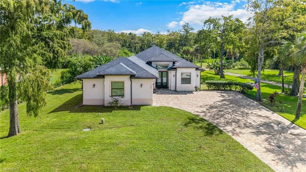 This beautifully maintained home offers 1,984 square feet under air plus a spacious screened lanai and an oversized two-car garage, all set on 2.74 acres in a prime “close-in” Golden Gate Estates location. Just 7 minutes from the new Shoppes at Orange Tree and 14 minutes to Founders Square, you’ll enjoy quick access to shopping, dining, and the new hospital at Immokalee Rd. and Collier Blvd. Inside, the open floor plan features 3 large bedrooms and a generous den, thoughtfully equipped with a 20-amp outlet and its own breaker—ideal for a home office, ham radio setup, or tech workspace. Built in 2022, the home showcases impact-resistant windows and doors (including the garage door) provides peace of mind, while the garage is outfitted with a 50-amp EV charging plug and a generator hook-up. (A portable generator is included.) Outdoors, enjoy a mango tree, banana tree, papaya tree, vegetable garden, brick paver driveway with extra parking for an RV or boat, plus a convenient RV hookup. This home truly blends modern comfort, safety, and convenience with the space and freedom of estate living.