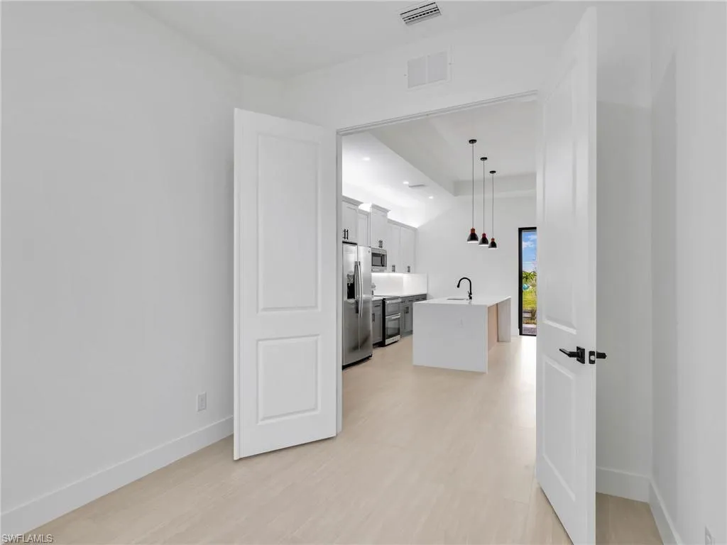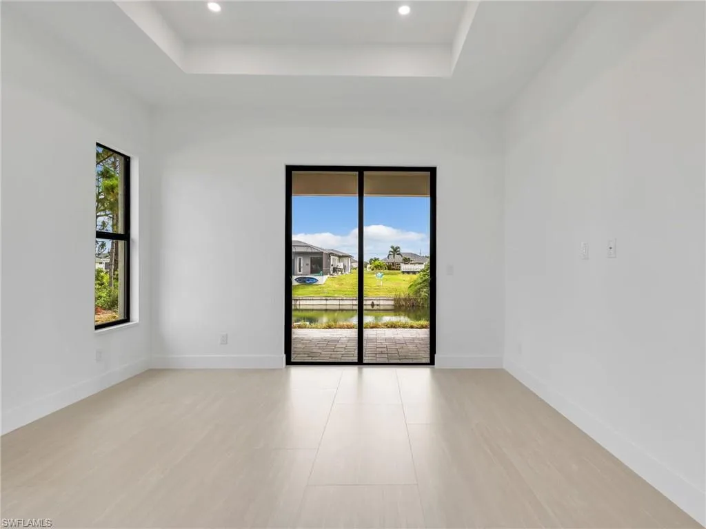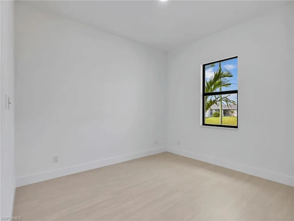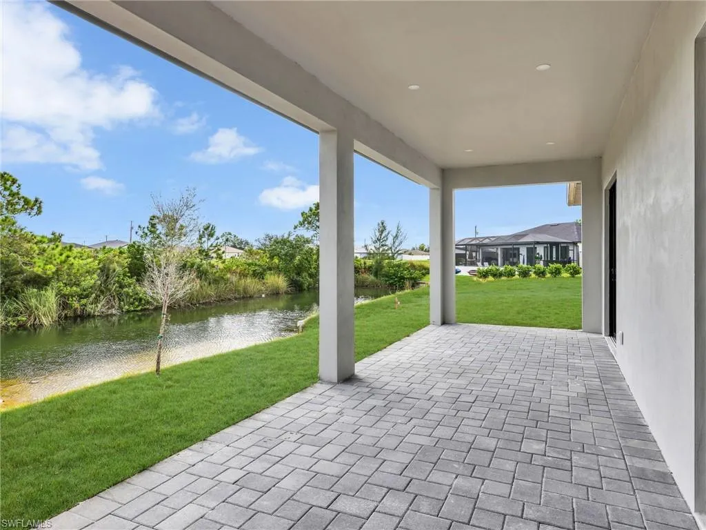 Brand-New Construction – Move-In Ready! This beautifully designed 3-bedroom + den, 2-bath home is ready for immediate occupancy in one of Cape Coral’s most sought-after neighborhoods. Enjoy serene freshwater views right from your backyard. The home features: • A sleek modern kitchen with quartz waterfall island and premium stainless steel appliances • Soaring ceilings that enhance the open, airy feel • A spacious laundry room with a folding area and generous cabinetry • Impact-resistant doors and windows for safety and peace of mind • No Flood Insurance Required!