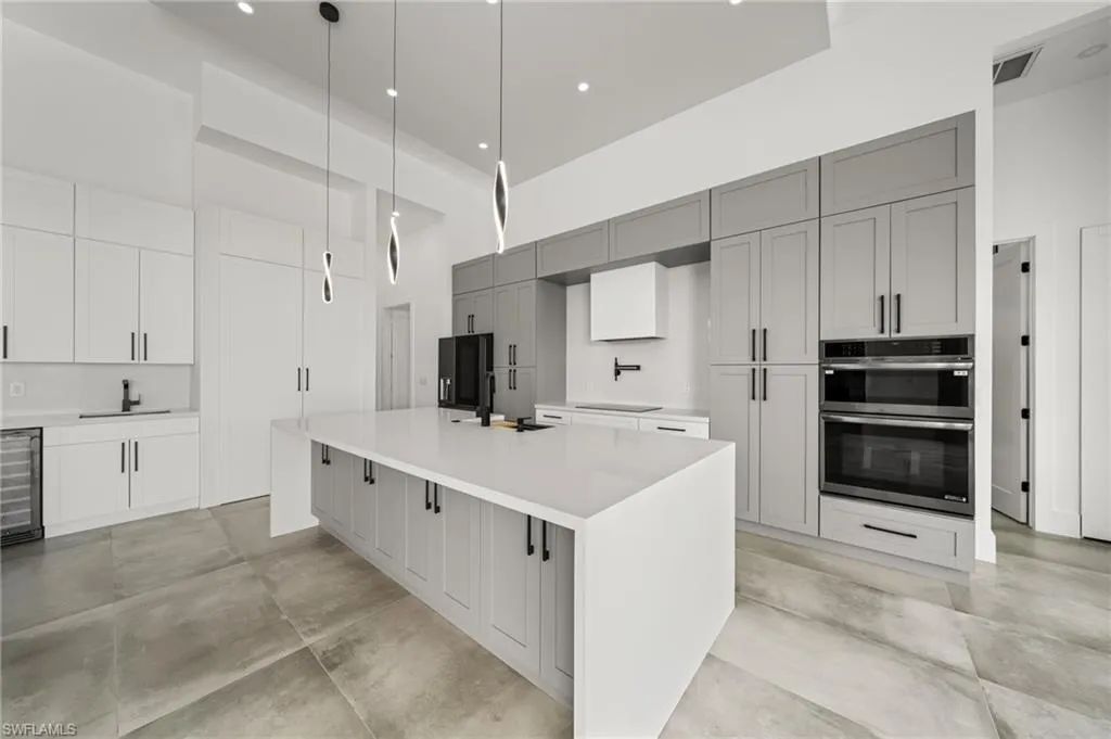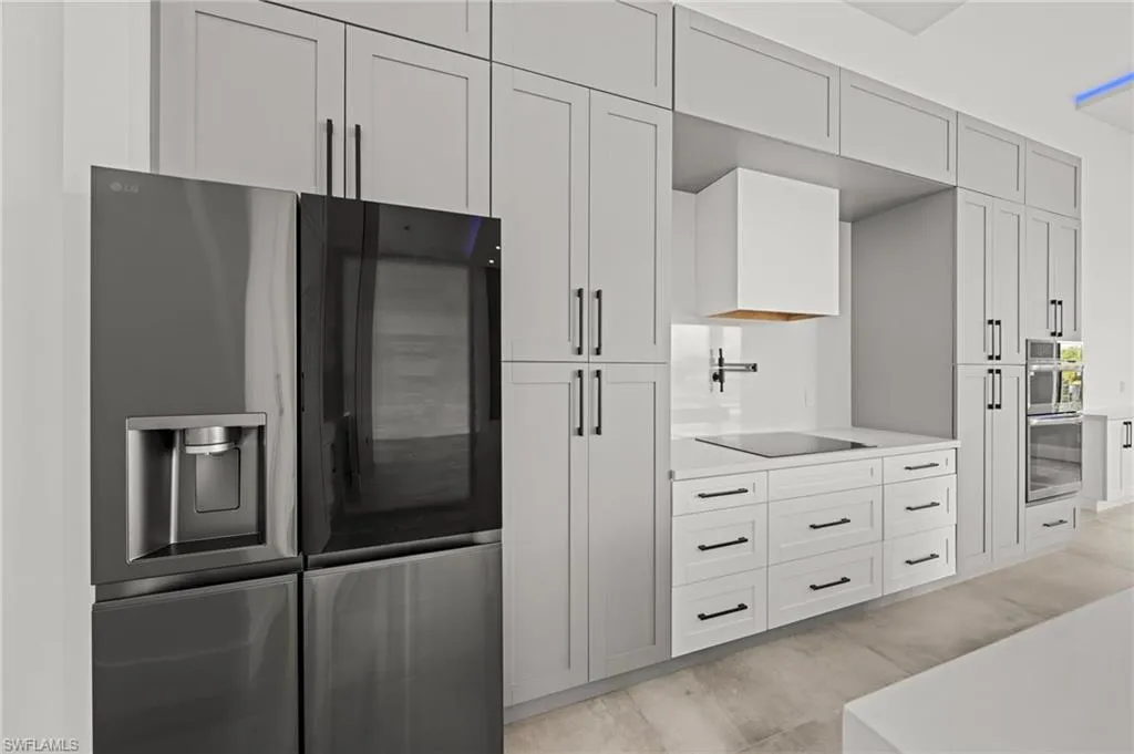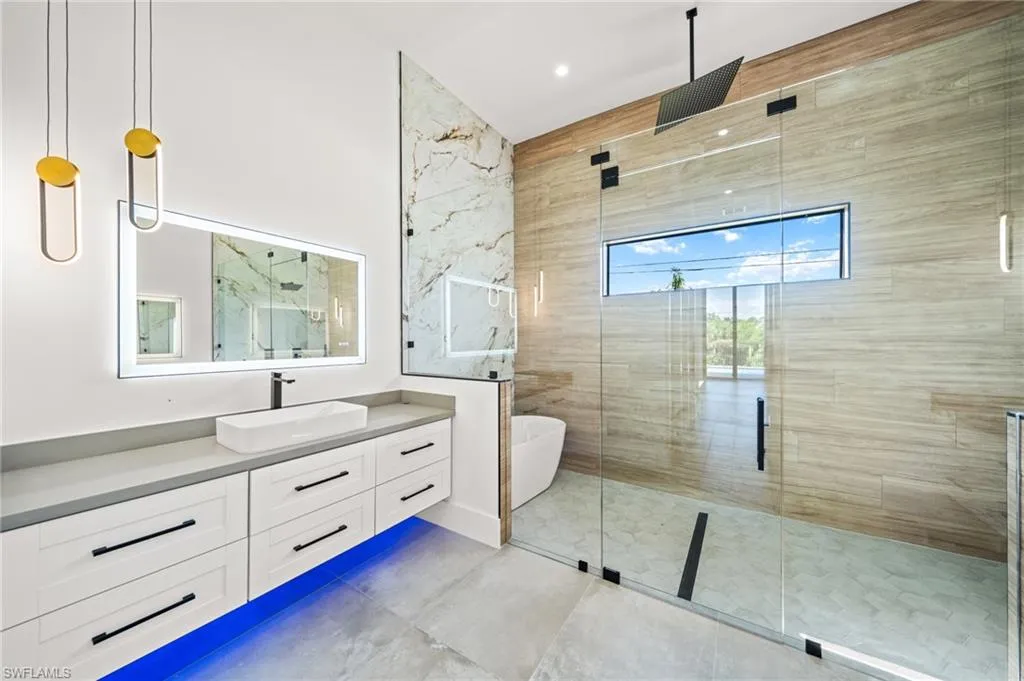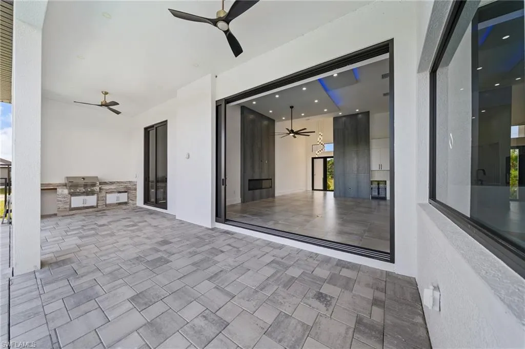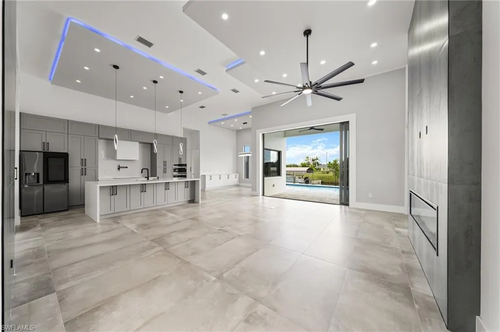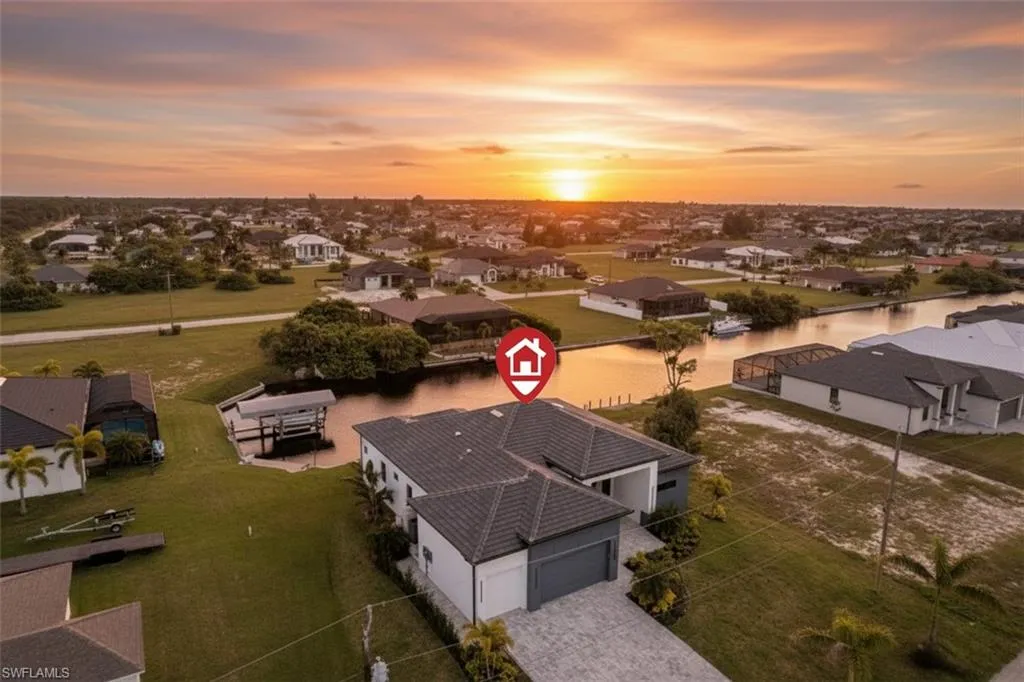 Luxury 2025 Gulf Access New Construction Home near the future Seven Islands & Coral Grove! Ultimate modern coastal living with this brand-new 2025 Gulf Access luxury home, perfectly positioned near Kismet Lakes and the highly anticipated Seven Islands waterfront project. Surrounded by other high-end Gulf access properties, this residence offers nearly 2,400 square feet of living space and over 3,500 total square feet, thoughtfully designed to embrace the Florida waterfront lifestyle. Step inside and be captivated by 14.8-foot designer tray ceilings with LED lighting, a striking electric fireplace feature wall, and large-format tile flooring that flows seamlessly through the open-concept floor plan. Expansive 10-foot impact sliding glass doors create a dramatic connection between the great room and the resort-style pool overlooking the canal, blending indoor with outdoor serenity. Entertainer’s kitchen centered around a mitered-edge quartz waterfall island with bar seating, real wood cabinetry, a premium appliance package, and a wet bar/coffee bar with beverage cooler. Upgraded with a whole-house reverse osmosis system. The primary suite feels like a luxury hotel retreat, featuring tranquil waterfront views, dual floating LED-lit vanities, a rainfall walk-in shower, and a freestanding soaking tub. 2 additional bedrooms and 3 full baths offer space and privacy for family and guests, while a private office or den provides flexibility as a 4th bed/study. Impact windows & doors, detailed ceilings, and designer finishes. A sparkling pool with sun shelf, spacious paver deck, and a built-in outdoor kitchen, perfect for entertaining and relaxing under the Florida sun. The home’s exterior features include a tile roof, tankless water heater, upgraded landscaping with mature palm trees, and a 3-car garage. BOATERS: Gulf access via Matlacha Pass, leading to world-class fishing, boating, and the barrier islands of Sanibel, Captiva, and Cayo Costa. Golfers: Palmetto Pines Country Club & Coral Oaks Golf Course. Minutes from Target, Publix, Starbucks, parks, and top-rated restaurants. The location is also close to several of Cape Coral’s most exciting upcoming developments, including Bimini Square, The Cove at 47th, Slipaway Marina, and the reimagined Cape Coral Yacht Club Beach. The future Seven Islands Project is expected to bring marinas, boutique shopping, dining, parks, and possibly even a beach area, making this neighborhood one of the most desirable in Southwest Florida. Built to the 2025 BUILDING CODE, this home exceeds the latest standards for safety, elevation, and energy efficiency—sitting higher than homes built in 2023 and offering protection & insurance SAVINGS. Luxury, lifestyle, and location, this is not your average new build—it’s a high-end waterfront masterpiece that captures the essence of modern Florida living. Don’t miss your opportunity to own this stunning Cape Coral Gulf Access pool home. Start living the life you’ve always dreamed of.
