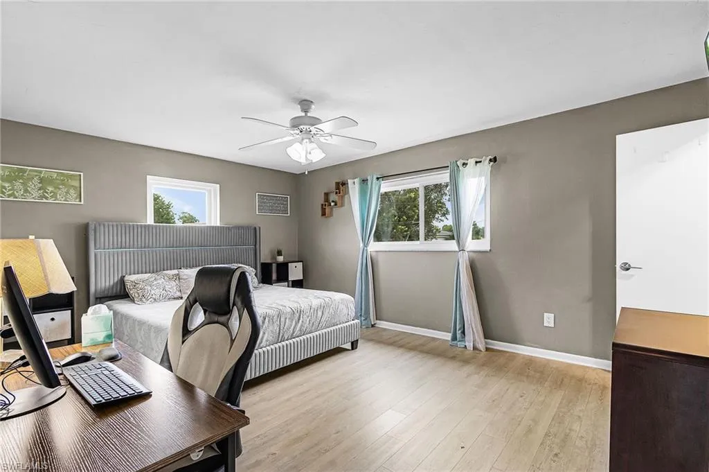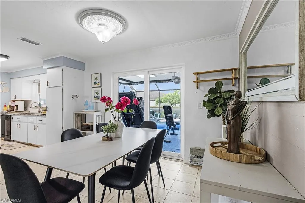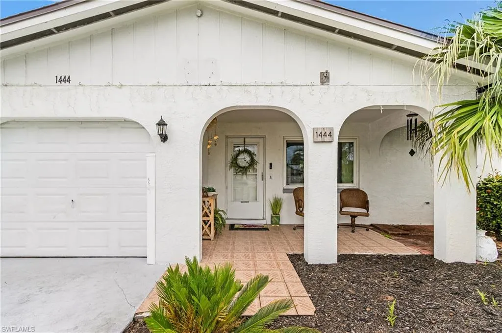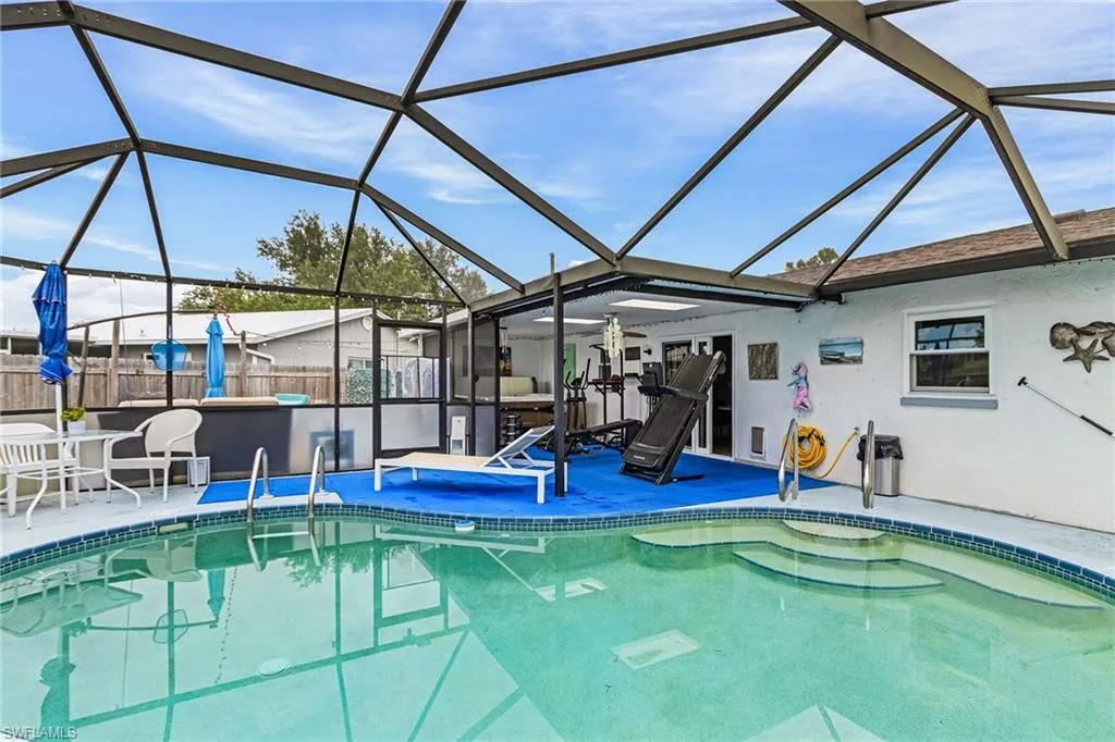 This tropical oasis Pool home has all the right Amenities, Features & LOCATION!! Perfect starter home or Rental, Roof 2023, Newer Vinyl windows, updated A/C & hot water heater, as soon as you enter this property it offers a wide-open floor plan, tiled floors in the main area of the house, the galley styled kitchen offers new granite counter tops & updated stainless steel ice maker refrigerator, newer vinyl flooring in the bedrooms & baths, great view from the living room dining area with New Impact sliders that lead out to your tropical screened pool & above ground heated spa lanai to start living the Florida life style, the main bedroom is large & offers new vinyl flooring with a walk in closet, main bath has a newer granite vanity top, wall mirror & tub & shower, the second bedroom has new vinyl flooring with a closet, inside laundry area, back yard is very private & the new 6ft vinyl fence was installed in 2021 with permits, there is a large additional concrete patio area outside the pool cage for all your entertaining needs, New large storage shed with power, auto sprinkler system, City Water & Sewer Assessments are all paid, 1 car garage, plenty of parking, close to all shopping, Restaurants, airport, I-75 & 25 minutes to Fort Myers Beach & the Gulf of America, make sure you put this home on your list to see!!