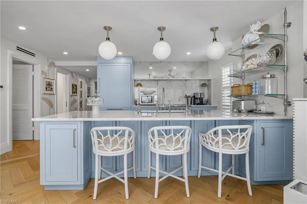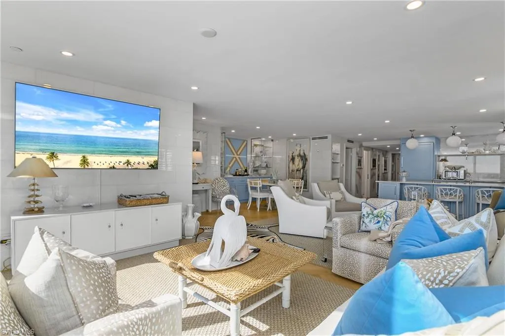 Welcome home to this luxurious beachfront end condominium residence at the St. Croix Club on the Moorings beach. This is a beautifully updated property which has been remastered by Joy Tribout Interiors, well known in St. Louis, Chicago, Arizona, and of course, Naples! She & her design specialists have rendered all of the elements which seamlessly make this property the epitome of coastal living. Here you’ll enjoy the highest level of appointments, finishes, & fixtures.